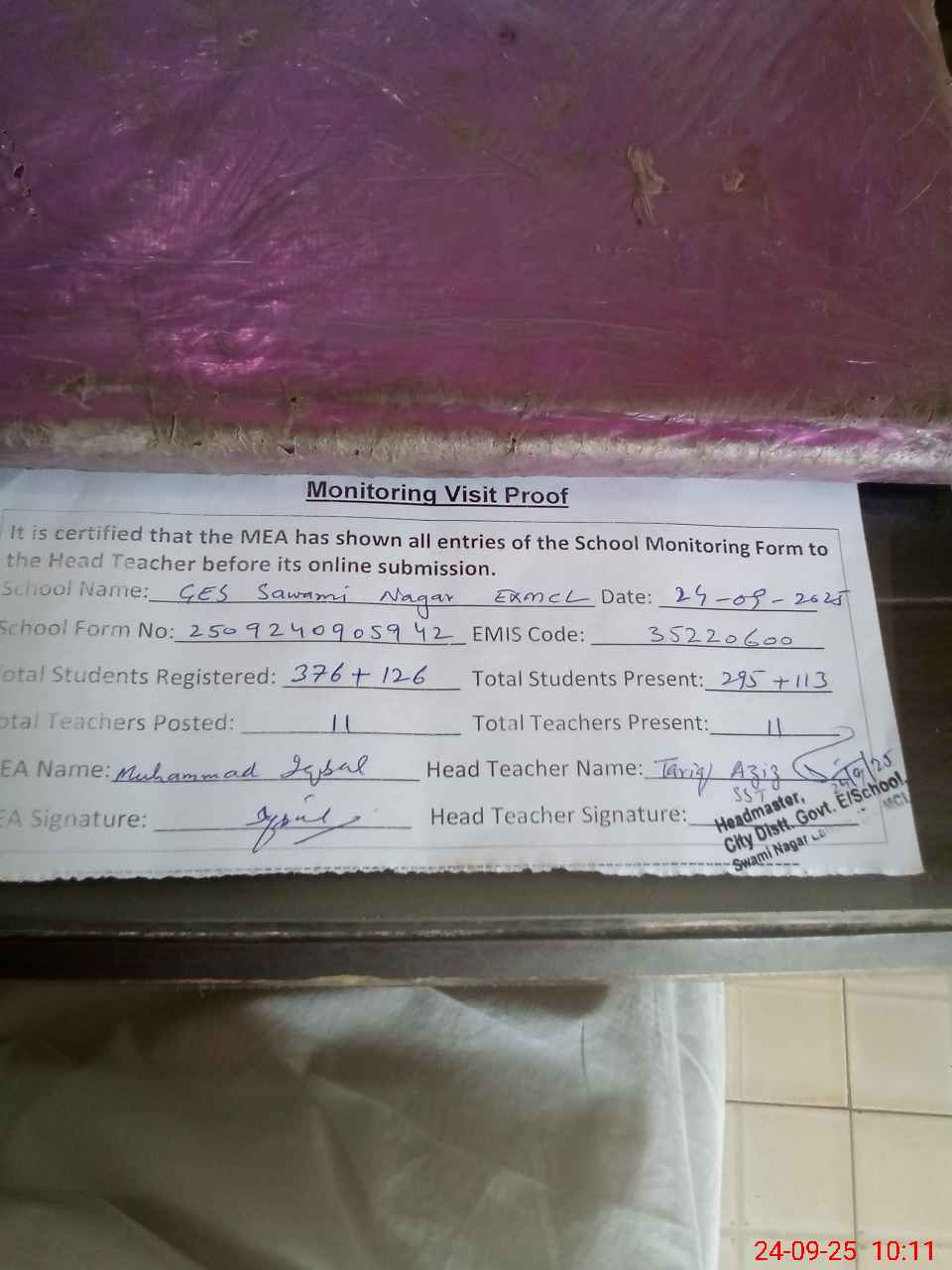 | Certified that this School was Inspected by the Undersigned MEA/DMO Today and the Information Stated Above is as Per Record. | |||||