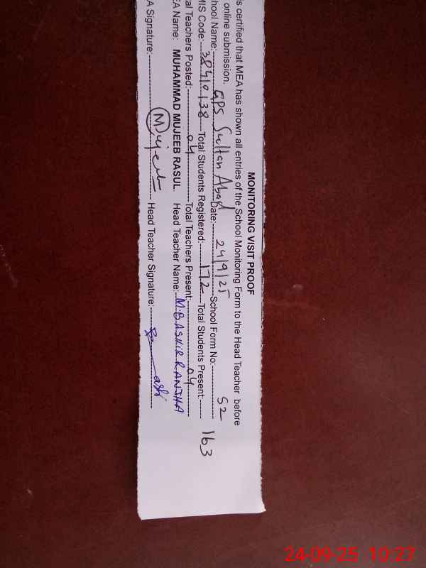 | EMIS Code: 38410138 | Name of School: GPS SULTAN ABAD | |||