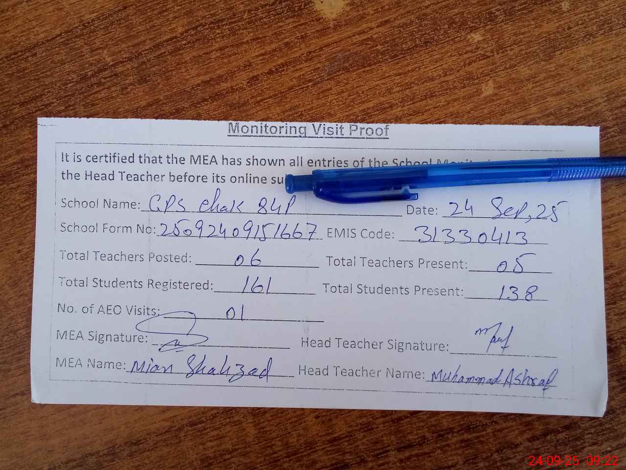 | EMIS Code: 31330413 | Name of School: GPS CHAK 84/P | |||