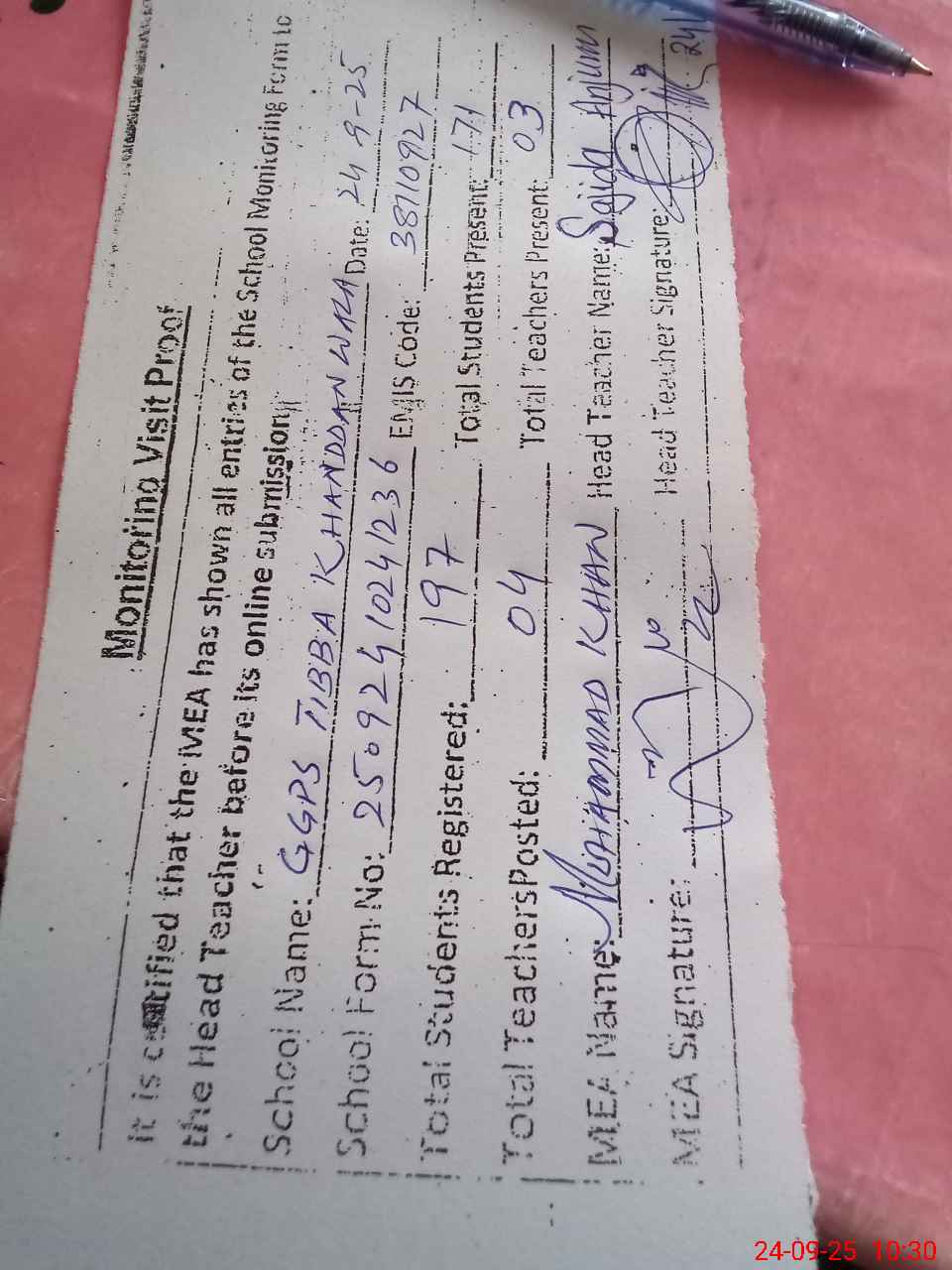 | EMIS Code: 38110927 | Name of School: GGPS TIBBA KHANDDAN WALA | |||