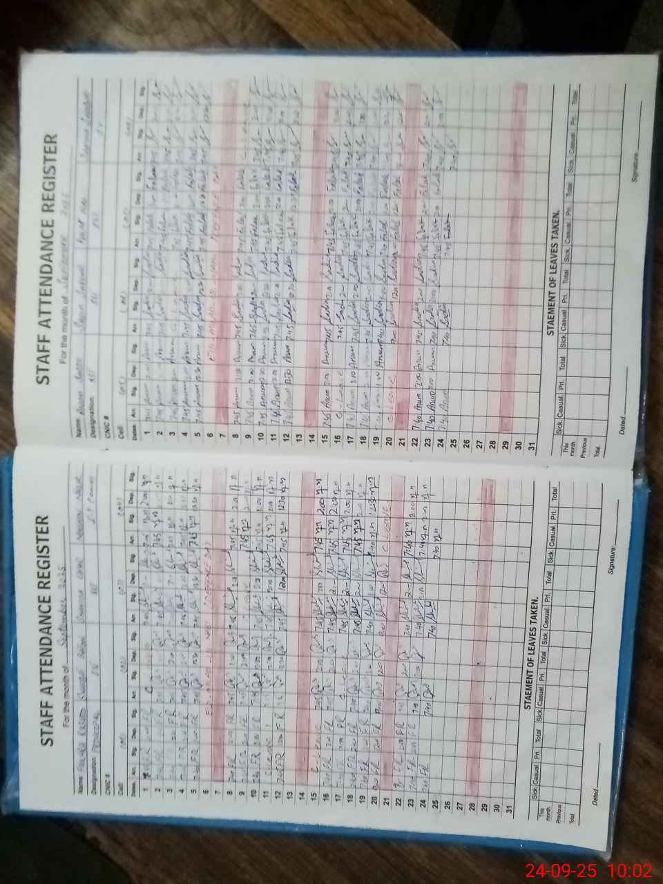 | Remarks (Use Separate Page if Required): Amina Tabassam Bulavi mark her absent due to that leave the blank column in the attendance register Teacher farzana Aslam EST leave not approved on line so mark her absent Teacher Tasleem Akhtar PST leave not approved on line Mark her absent | |||||