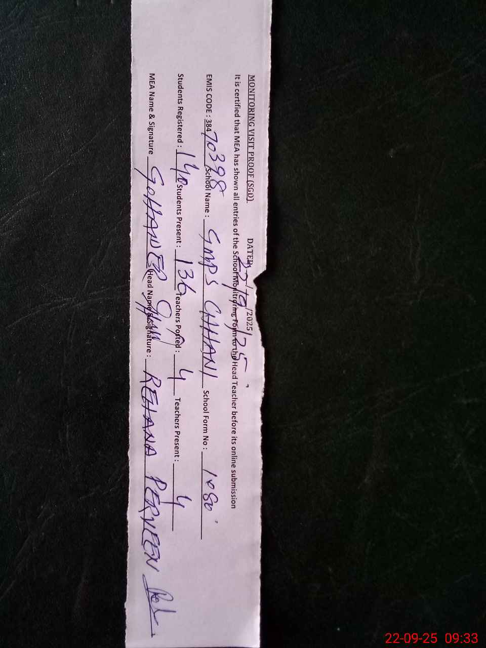 | EMIS Code: 38470398 | Name of School: GPS CHHANI SYEDAN | |||