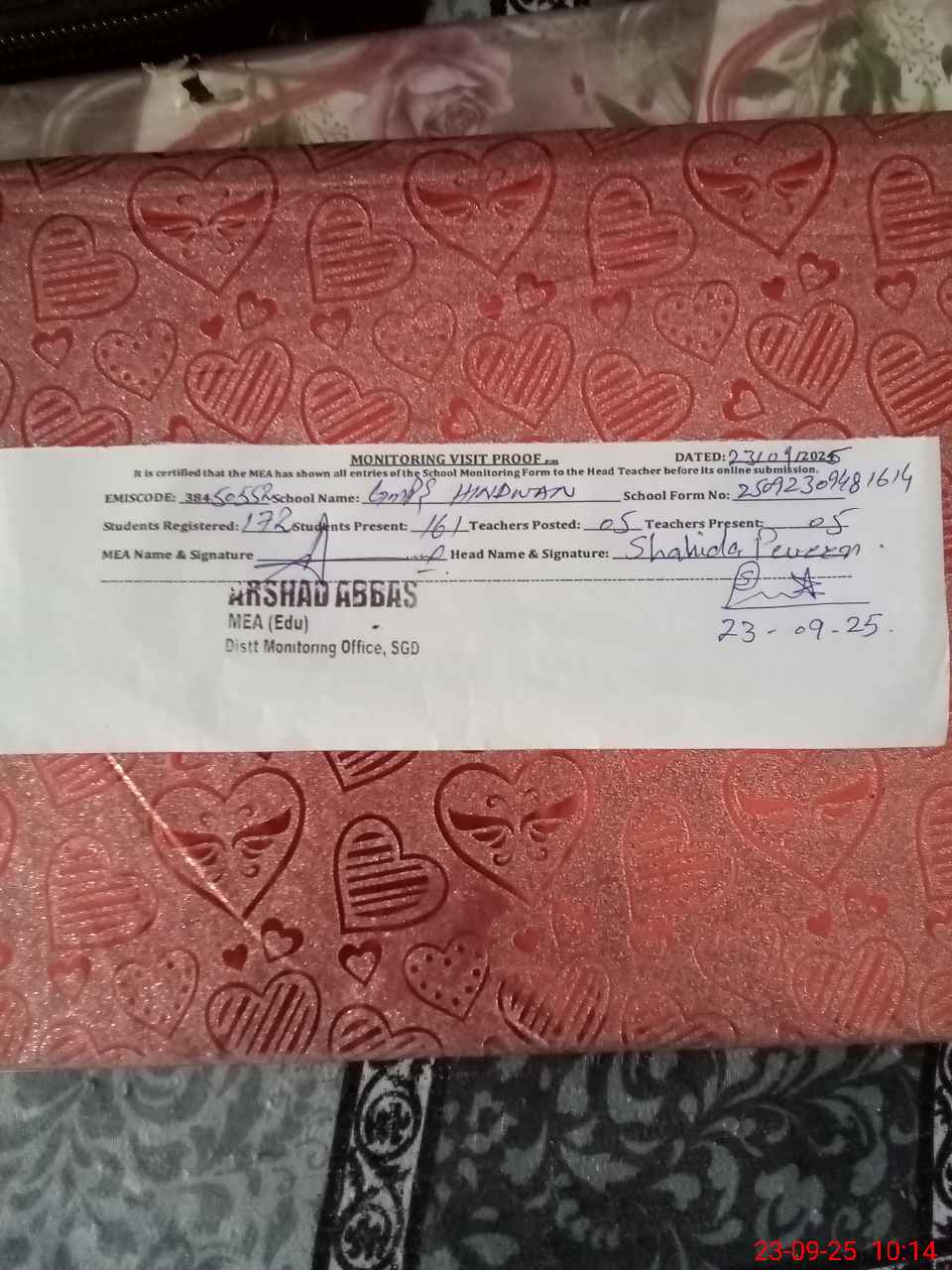 | Certified that this School was Inspected by the Undersigned MEA/DMO Today and the Information Stated Above is as Per Record. | |||||