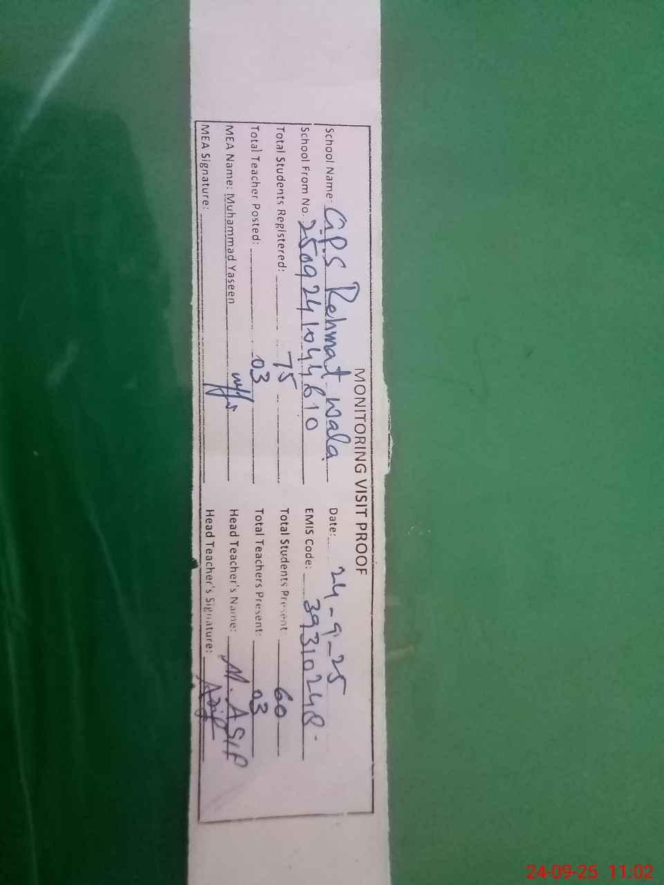 | EMIS Code: 39310248 | Name of School: GPS REHMAT WALA | |||