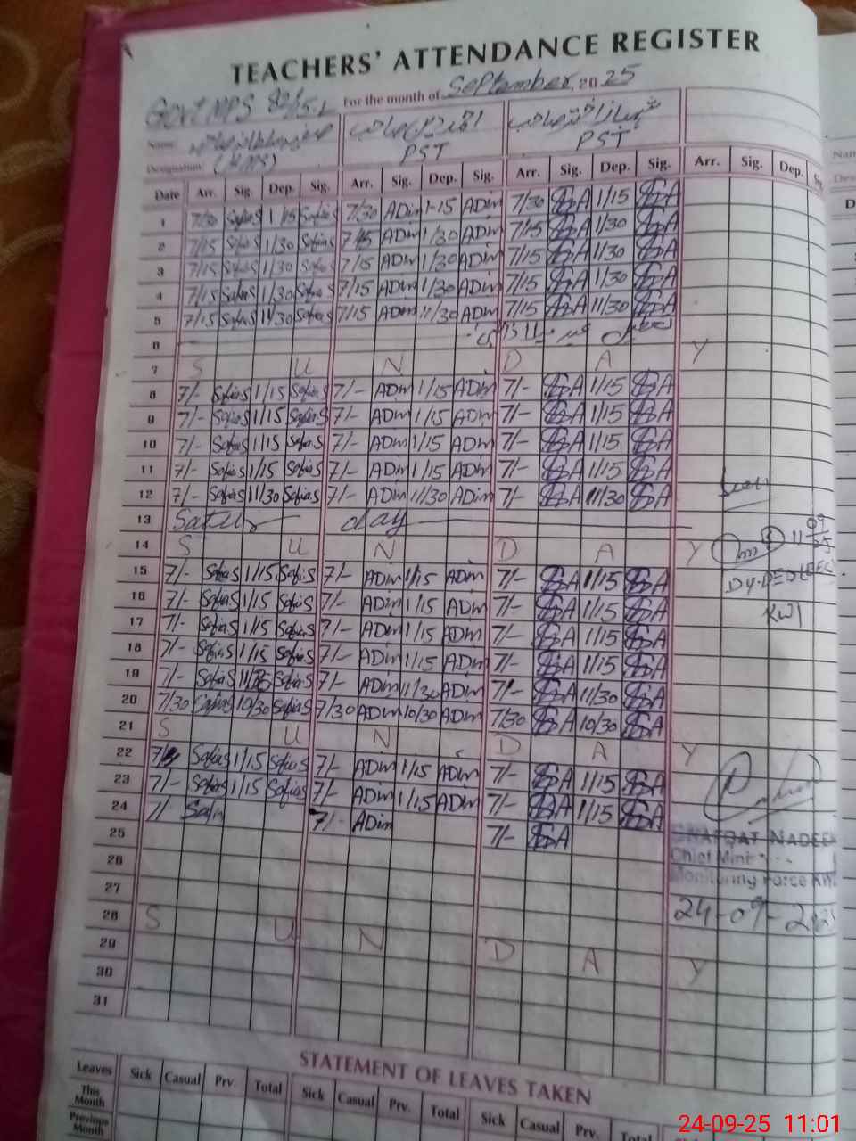 | Name: Sa**** Su**** Designation: (School Headmaster's/Headmistress's) PST Phone/Cell Number: 03**** |