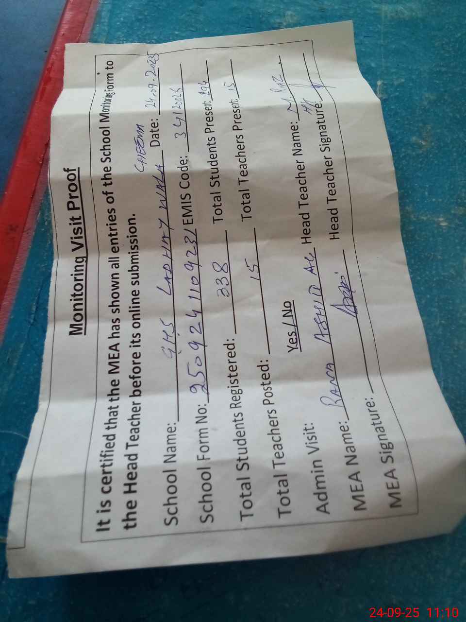 | EMIS Code: 34120026 | Name of School: GHS LADHAY WALA CHEEMA | |||