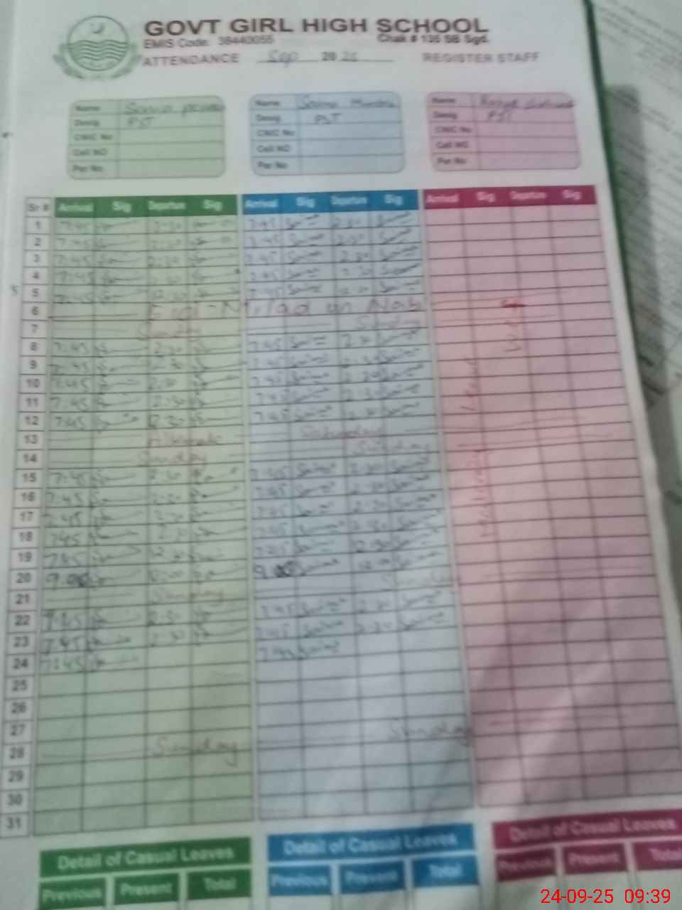 | 38**** | Ra**** Sh**** | PST | Regular | 0 | 0 | 0 | 0 | 0 | 0 | 0 | 0 | 0 | Maternity |