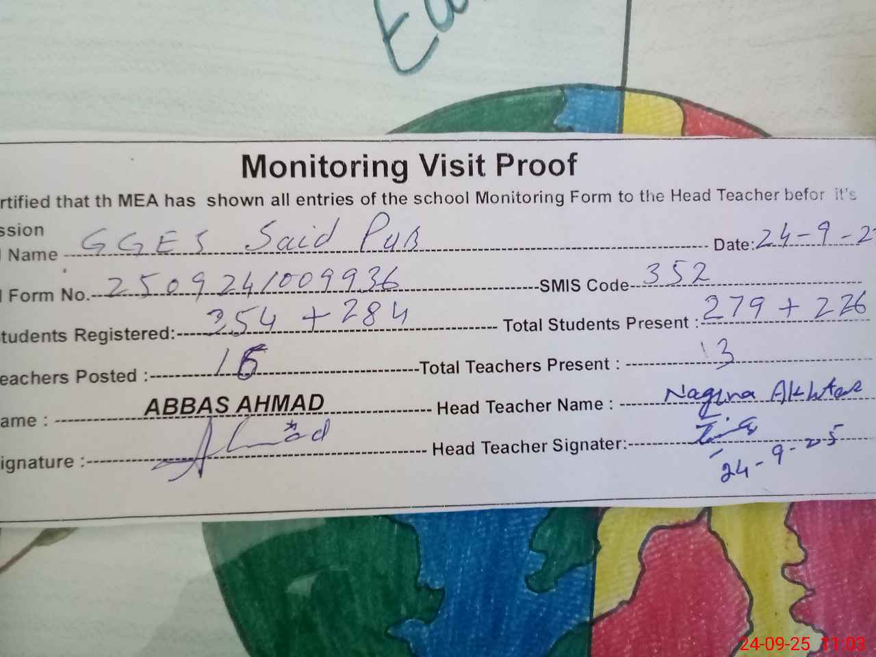 | EMIS Code: 35220634 | Name of School: GGES JUNIOR MODEL SAID PUR (EX-MCL) | |||
