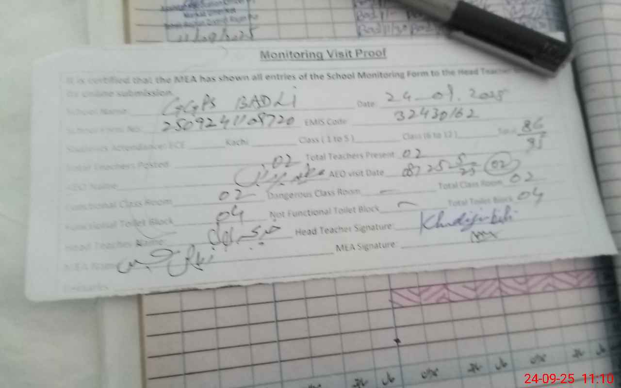 | EMIS Code: 32430162 | Name of School: GGPS BADLI | |||