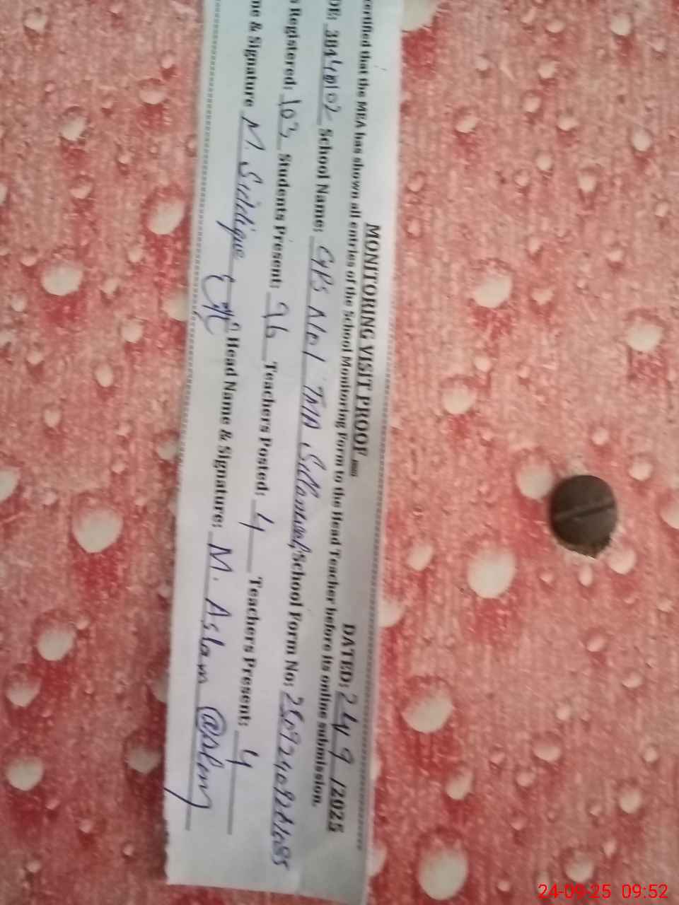 | EMIS Code: 38440102 | Name of School: GPS NO.1 TMA ROAD SILLANWALI | |||