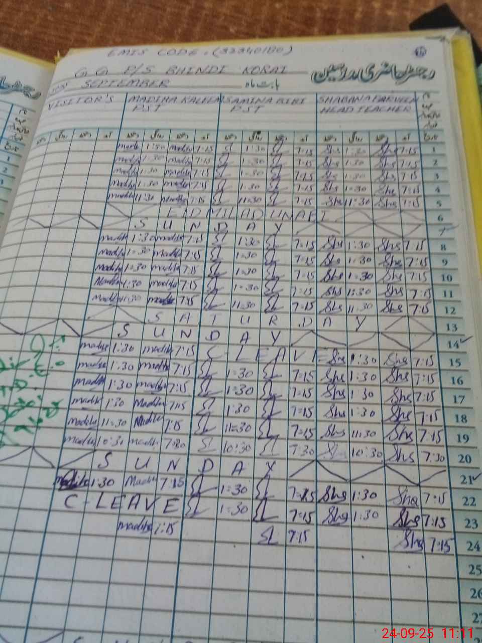 | Leave | Duty | Absent | Maternity | Medical | Ex- Pak |