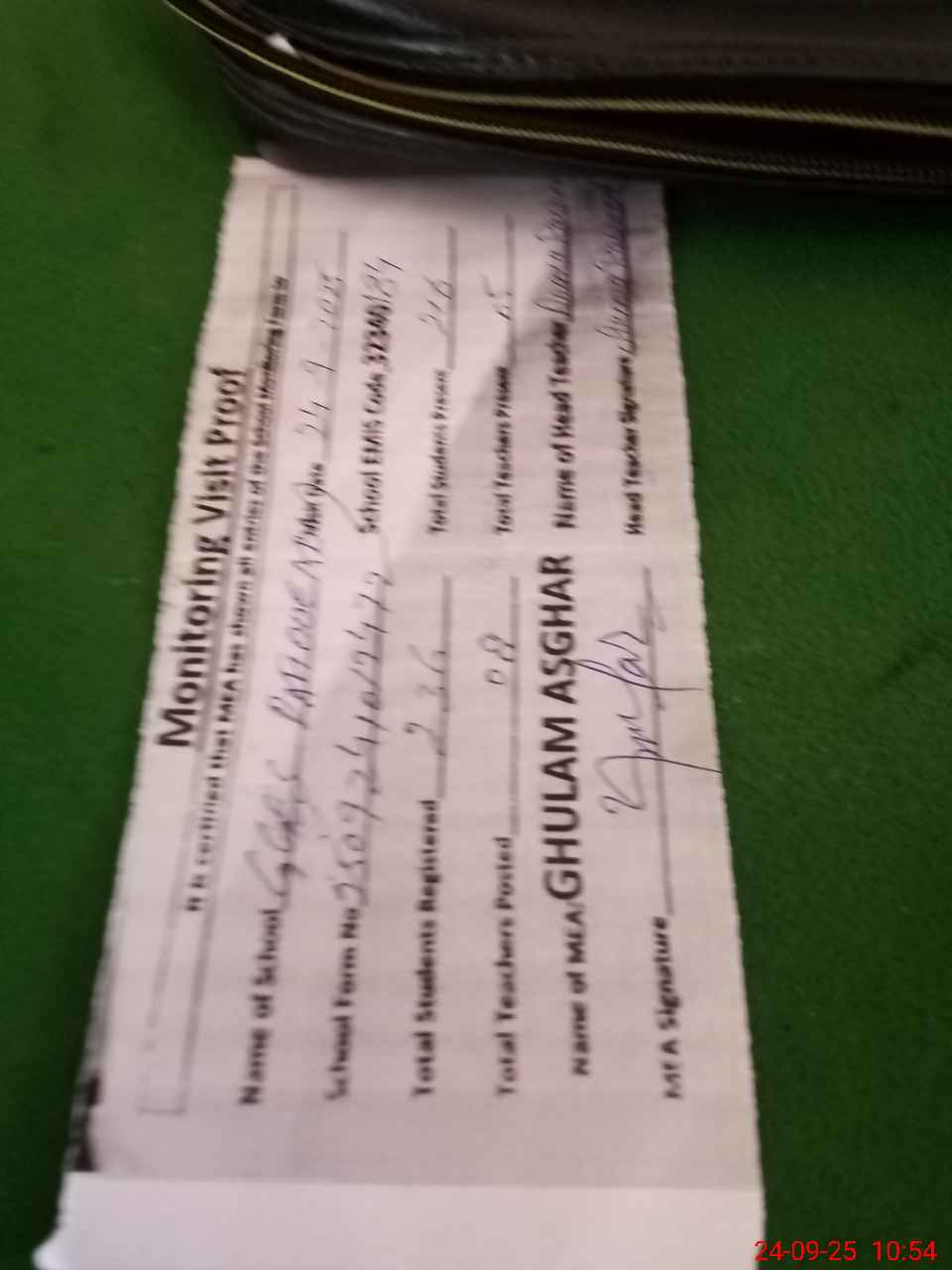 | Monitoring Date: 24-09-2025 | Start Time: 24-09-2025 10:12 AM | End Time: 24-09-2025 10:54 AM | Name of MEA: Gh**** As**** (R**** 02**** | |