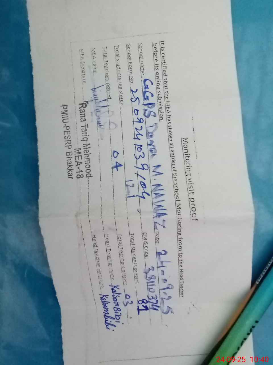 | EMIS Code: 38110373 | Name of School: GGPS DERA MUHAMMAD NAWAZ | |||