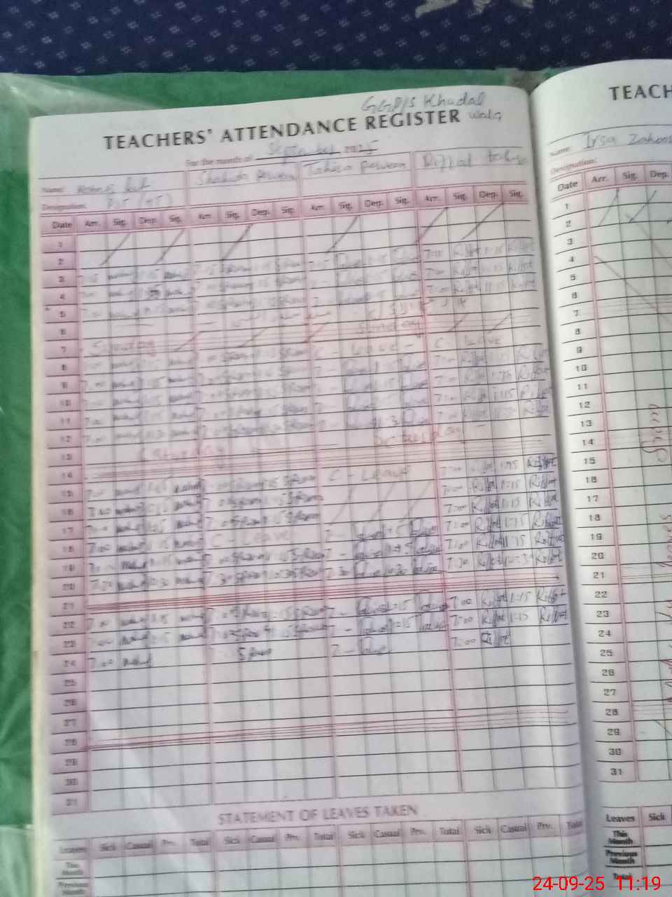| 33**** | Ir**** Za**** | PST | Regular | 0 | 0 | 0 | 0 | 0 | 0 | 0 | 0 | 0 | Maternity |