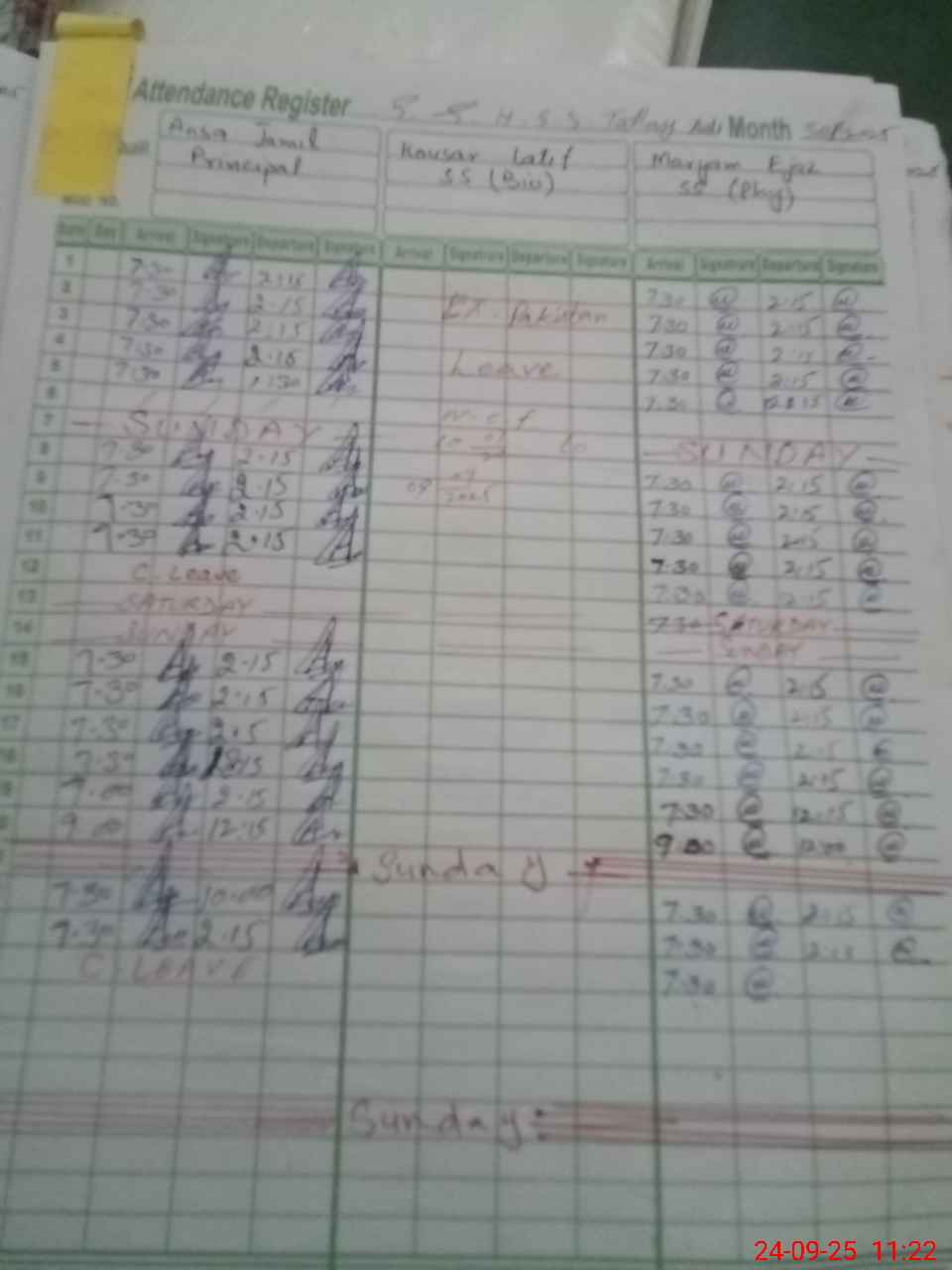 | 34**** | An**** Ja**** | PRINCIPAL | Regular | 0 | 0 | 0 | 0 | 0 | 0 | 0 | 0 | 0 | Casual |
