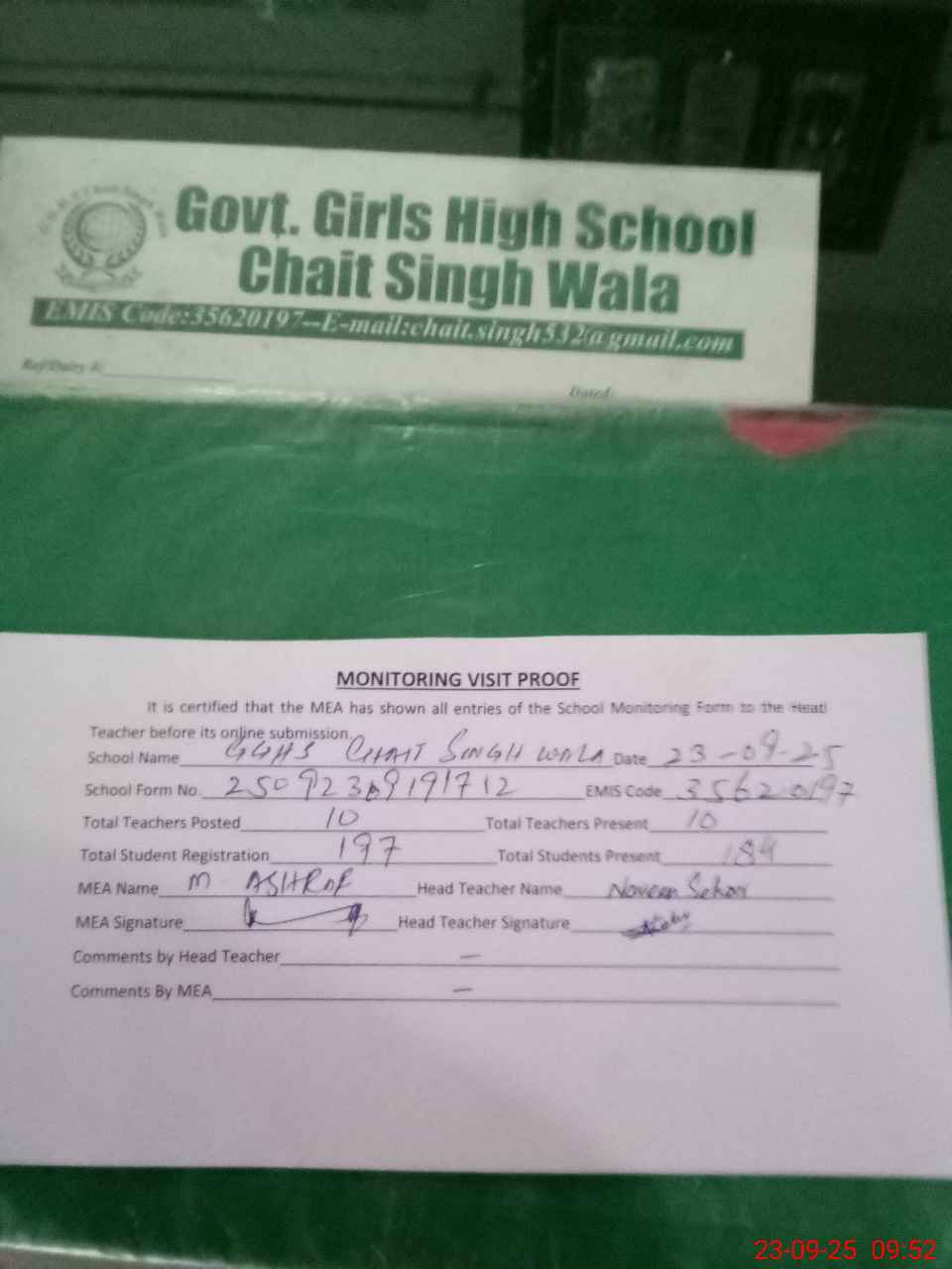 | EMIS Code: 35620197 | Name of School: GGHS CHAIT SINGH WALA | |||