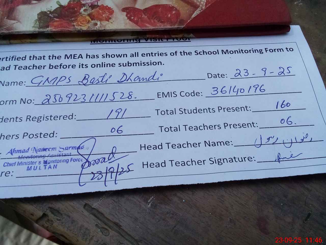 | Certified that this School was Inspected by the Undersigned MEA/DMO Today and the Information Stated Above is as Per Record. | |||||
