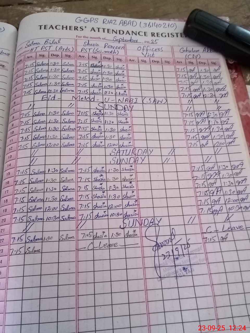 | CNIC | Full Name | Designation | R/C | Absence During Last Calender Month |