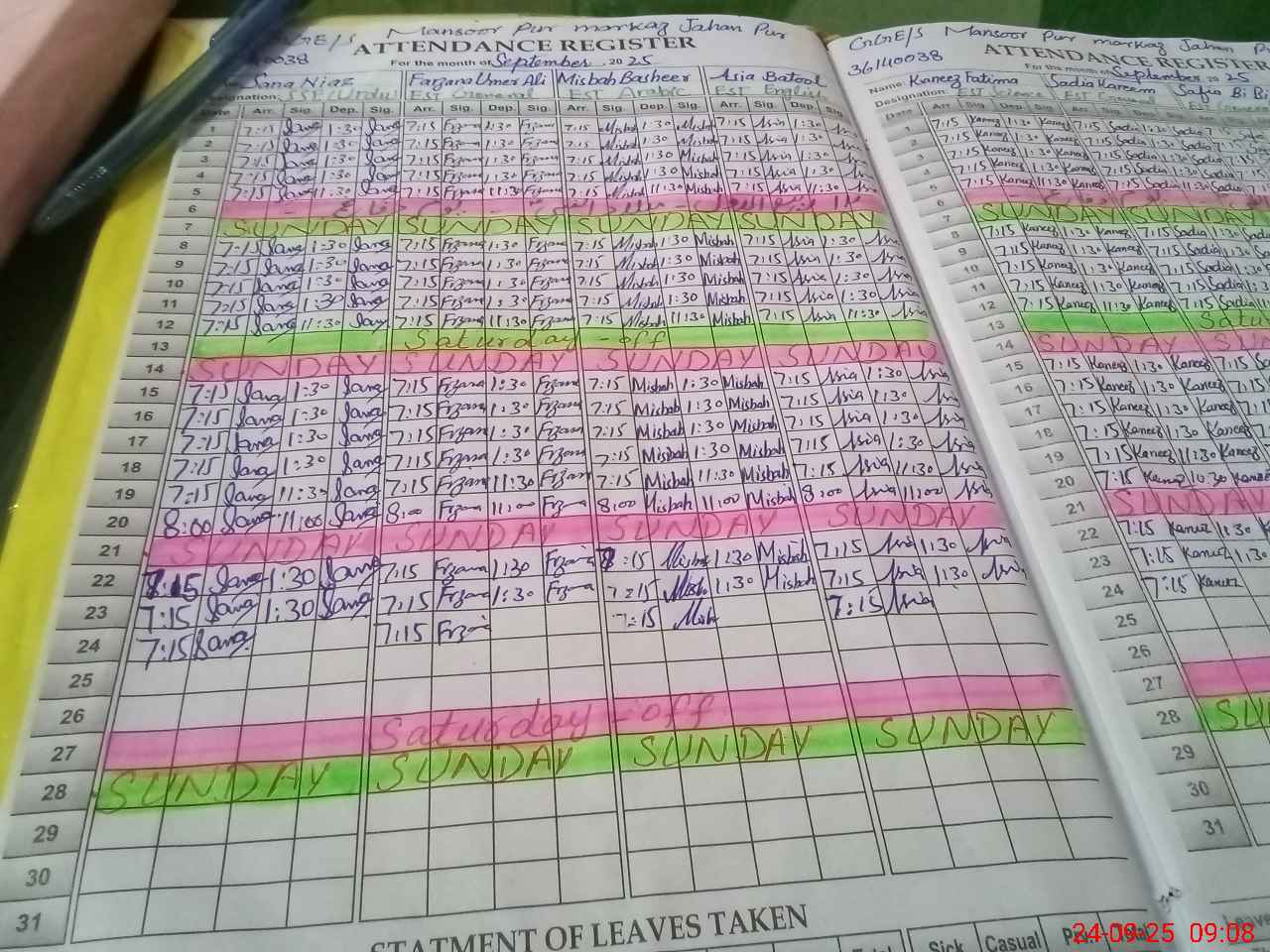 | Leave | Duty | Absent | Maternity | Medical | Ex- Pak |