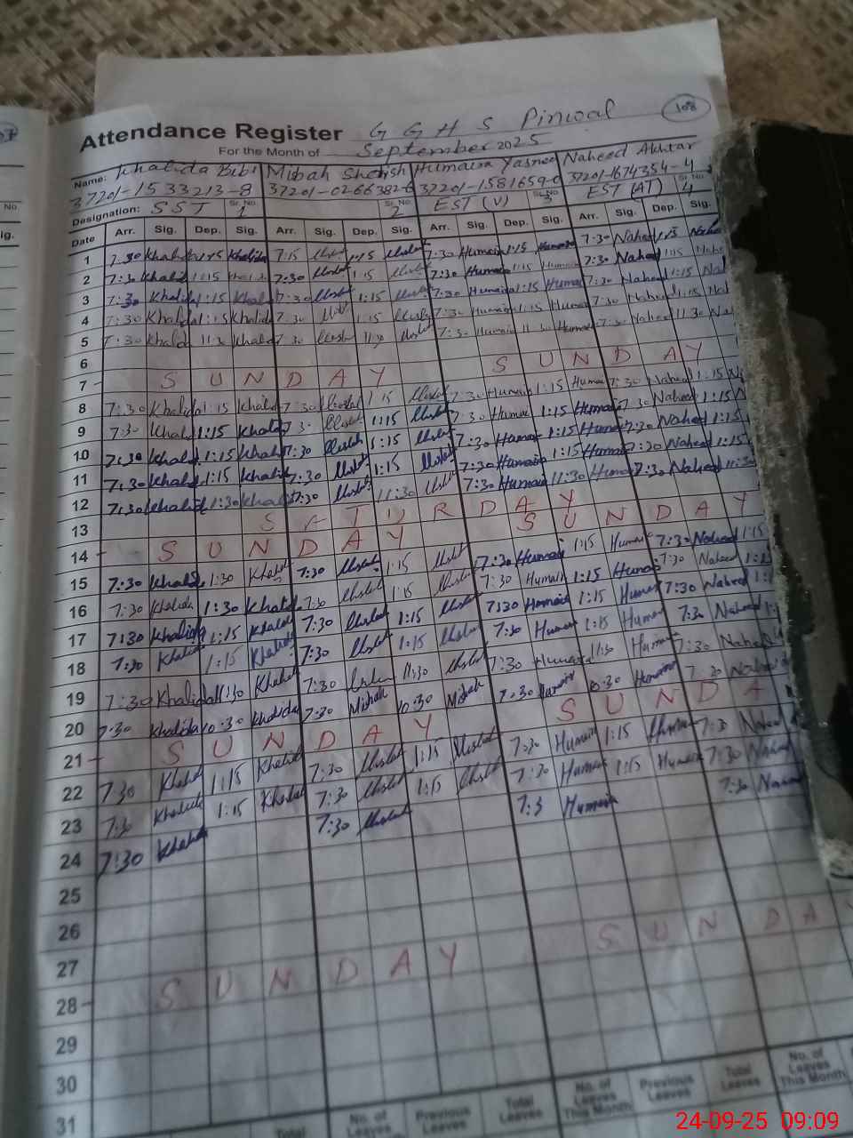 | 37**** | Mo**** As**** | NAIB QASAD | 0 | 0 | 0 | 0 | 0 | 0 | 0 | 0 | 0 | Absent (Un-Authorized) | |