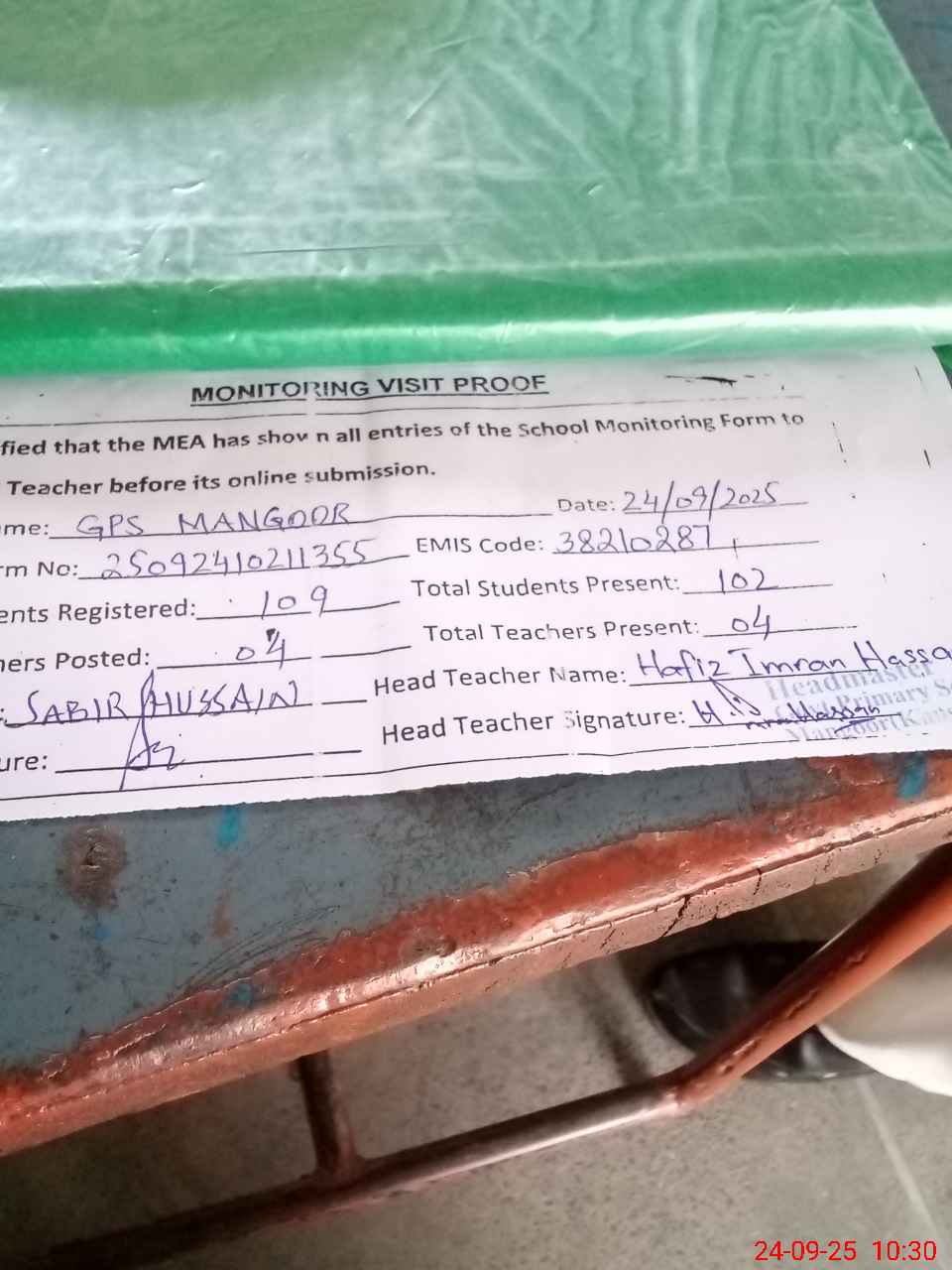 | EMIS Code: 38210287 | Name of School: GPS MANGOOR | |||