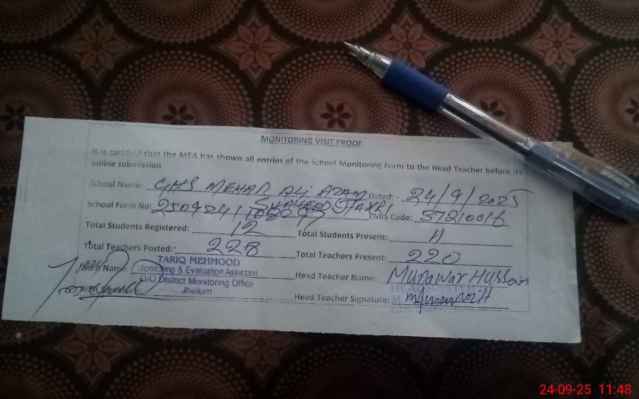 | EMIS Code: 37210016 | Name of School: GHS MEHR ALI AZAM SHAHEED (CHAKRI) | |||