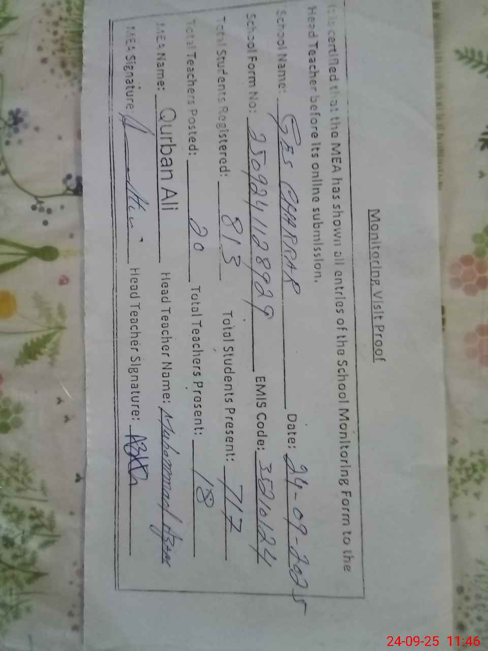 | Name: MU**** Az**** Kh**** Designation: (School Headmaster's/Headmistress's) EST Incharge Head Phone/Cell Number: 03**** |