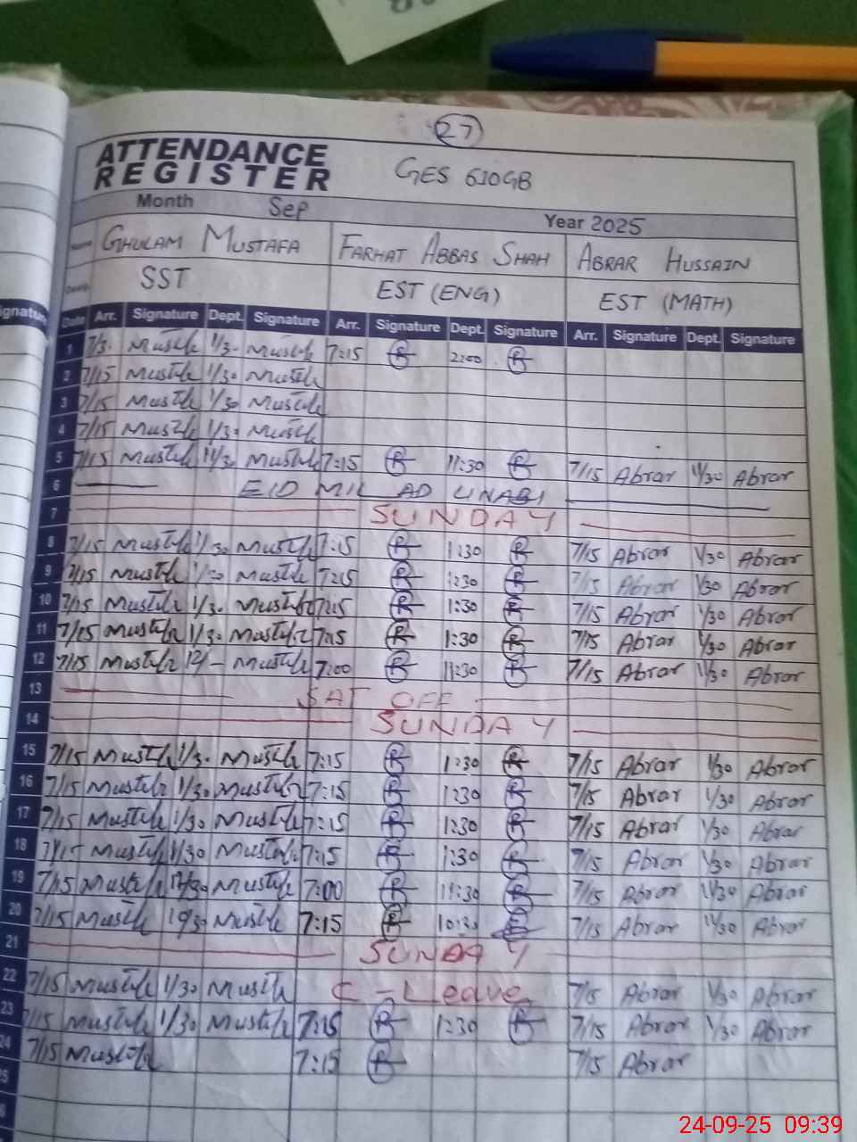 | Monitoring Date: 24-09-2025 | Start Time: 24-09-2025 09:11 AM | End Time: 24-09-2025 09:42 AM | Name of MEA: MU**** ZU**** | |