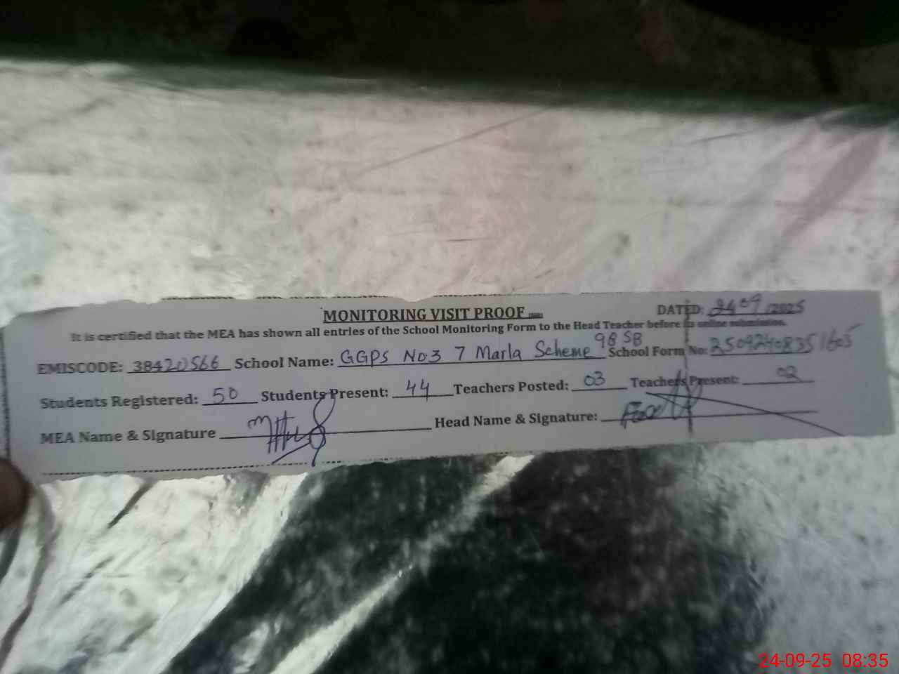 | EMIS Code: 38420566 | Name of School: GGPS NO.3 7-MARLA SCHEME CHAK NO.98 SB | |||