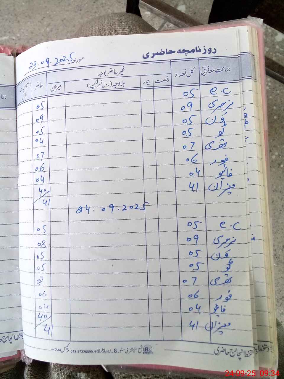 | CNIC | Full Name | Designation | R/C | Absence During Last Calender Month |