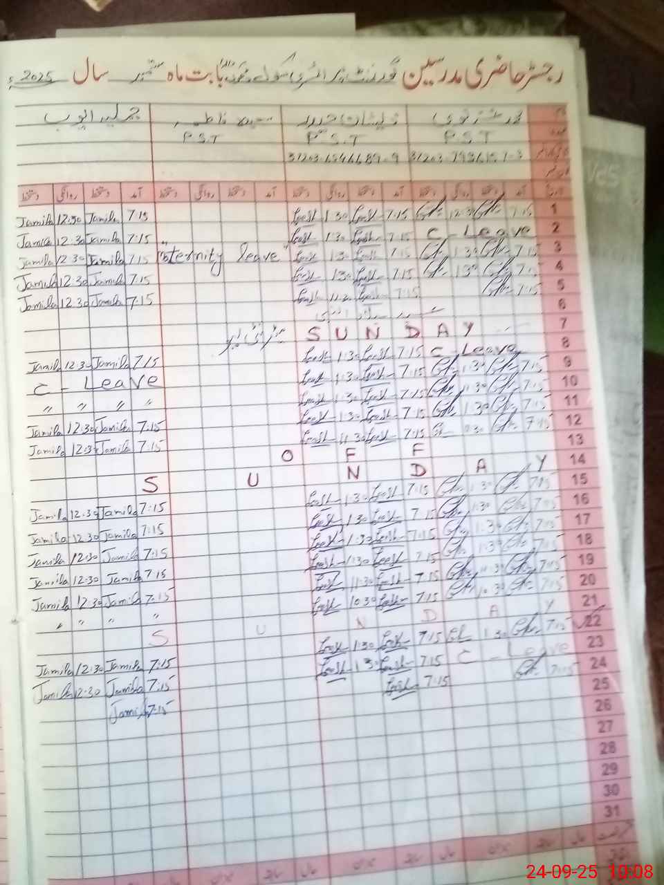 | Leave | Duty | Absent | Maternity | Medical | Ex- Pak |