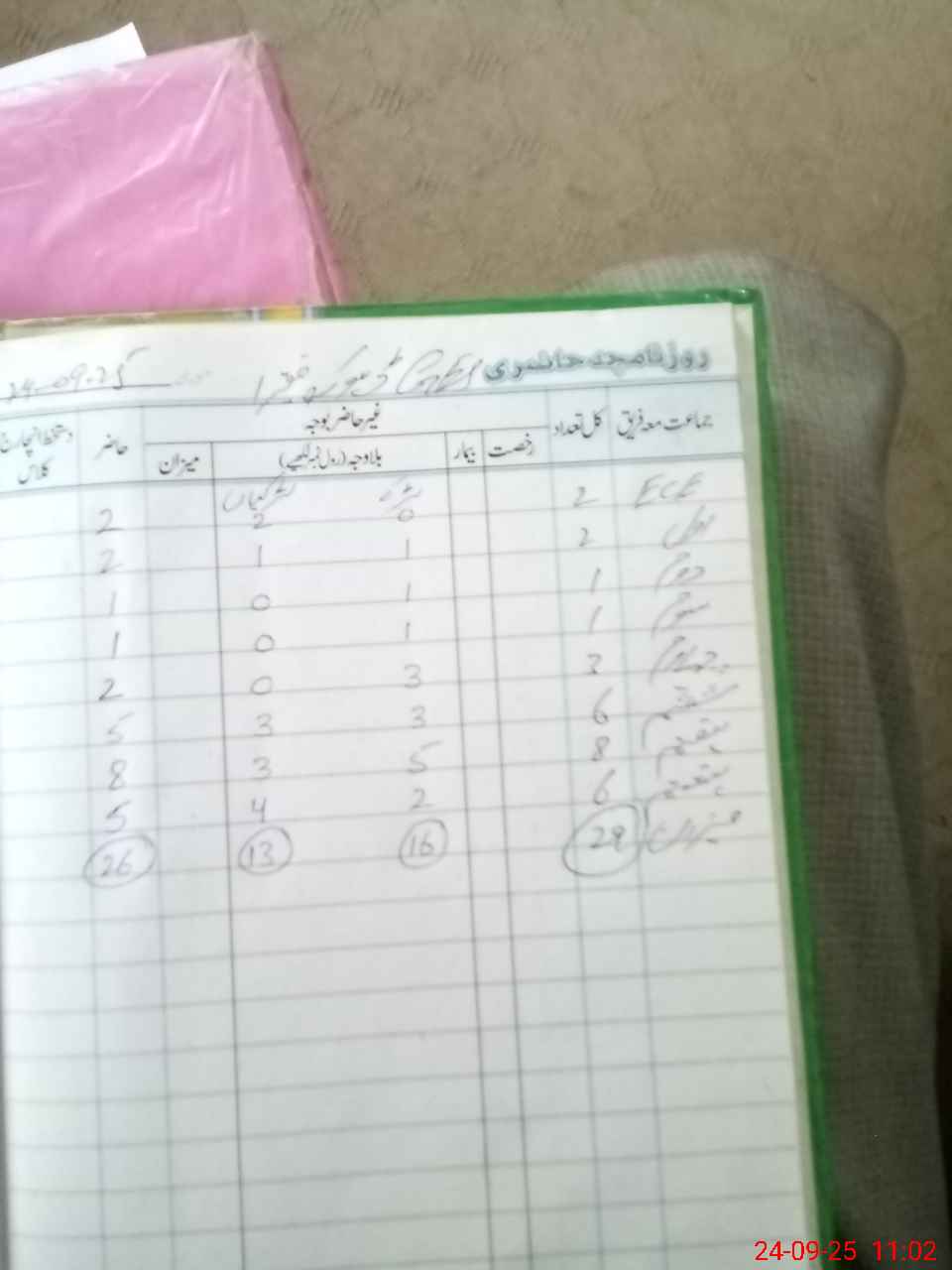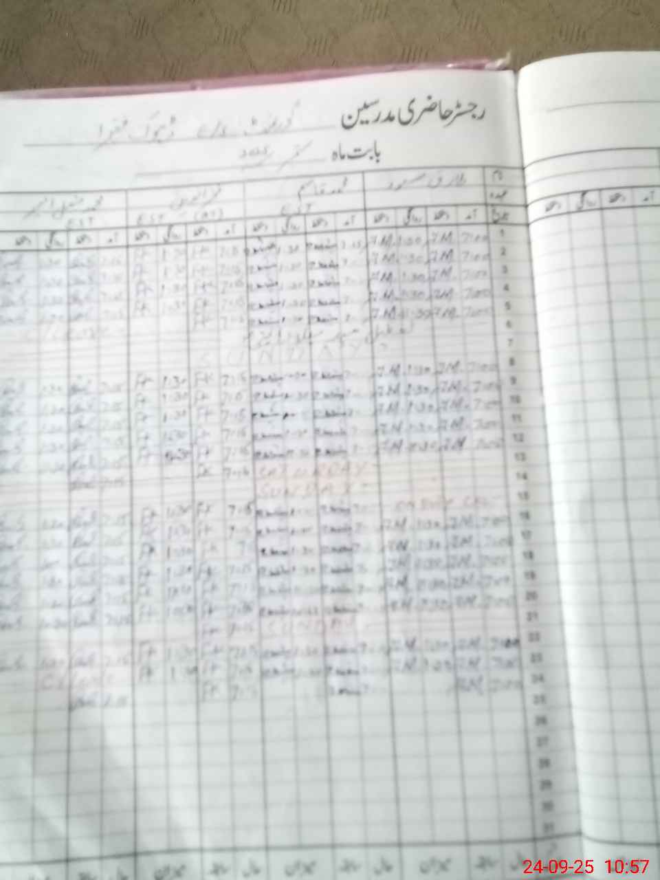 | CNIC | Full Name | Designation | R/C | Absence During Last Calender Month |