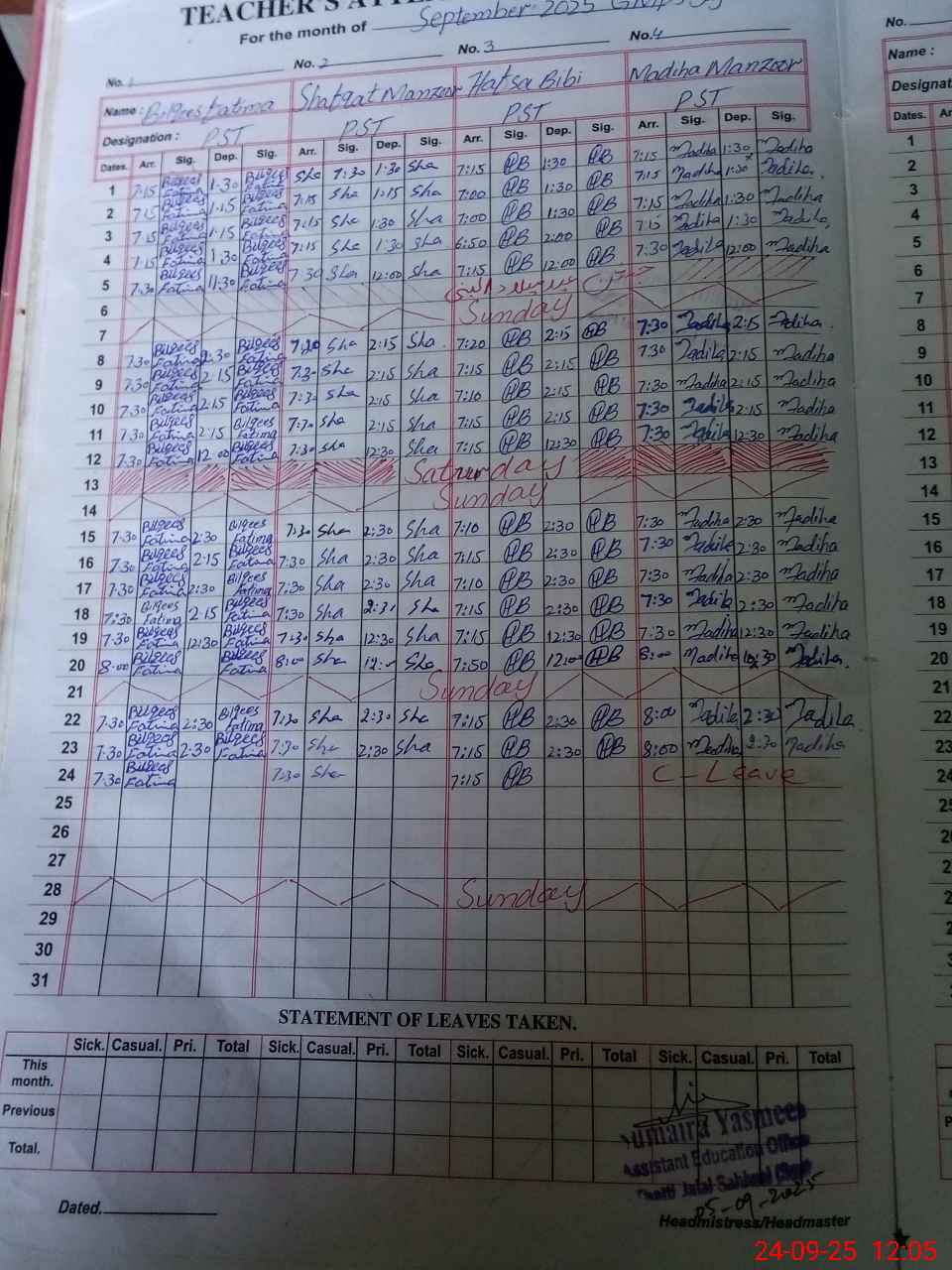 | 38**** | Ma**** Ma**** | PST | Regular | 0 | 0 | 0 | 0 | 0 | 0 | 0 | 0 | 0 | Casual |