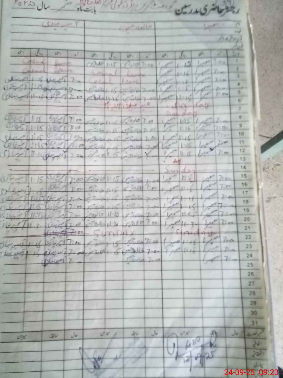 | CNIC | Full Name | Designation | R/C | Absence During Last Calender Month |
