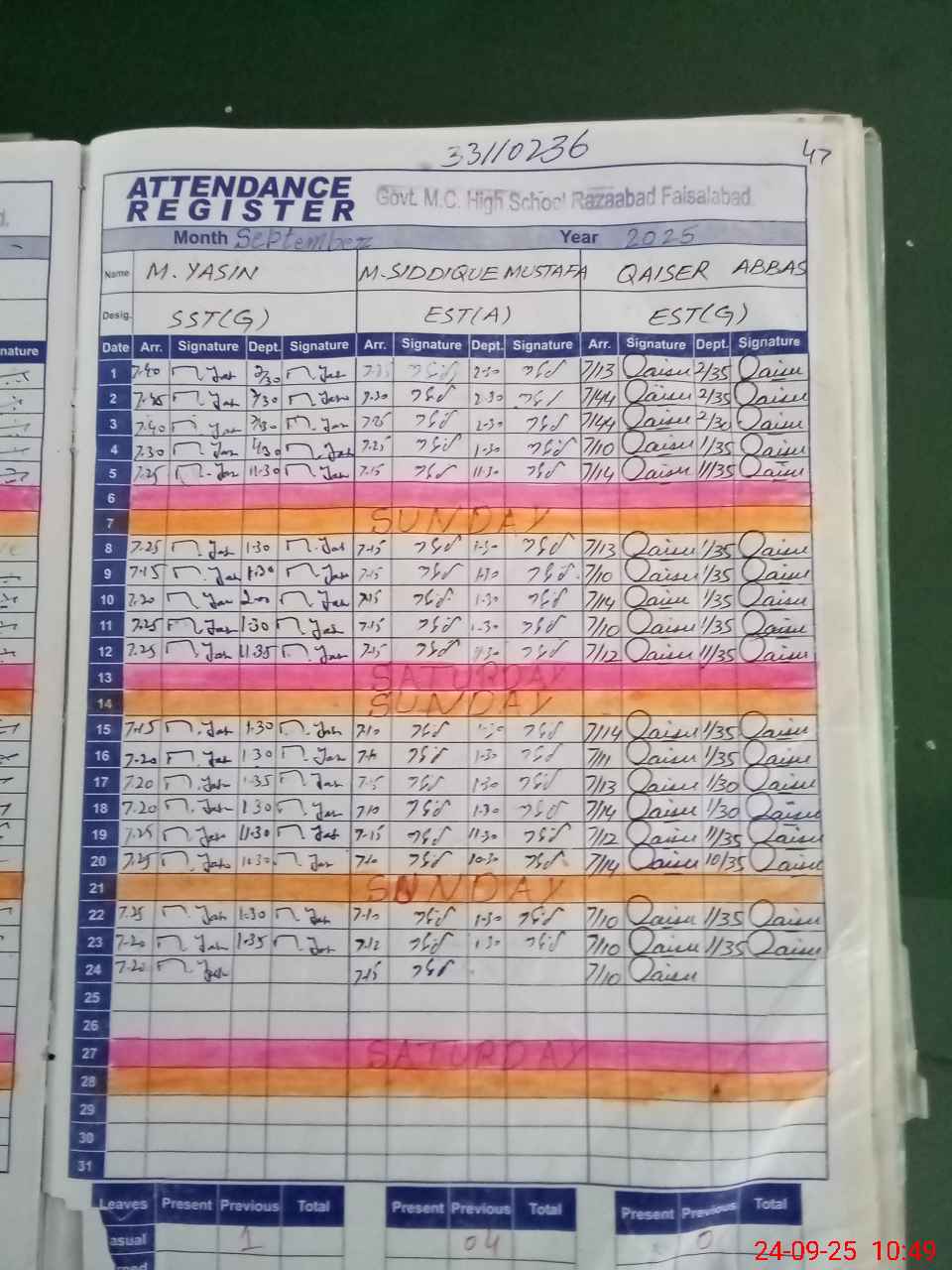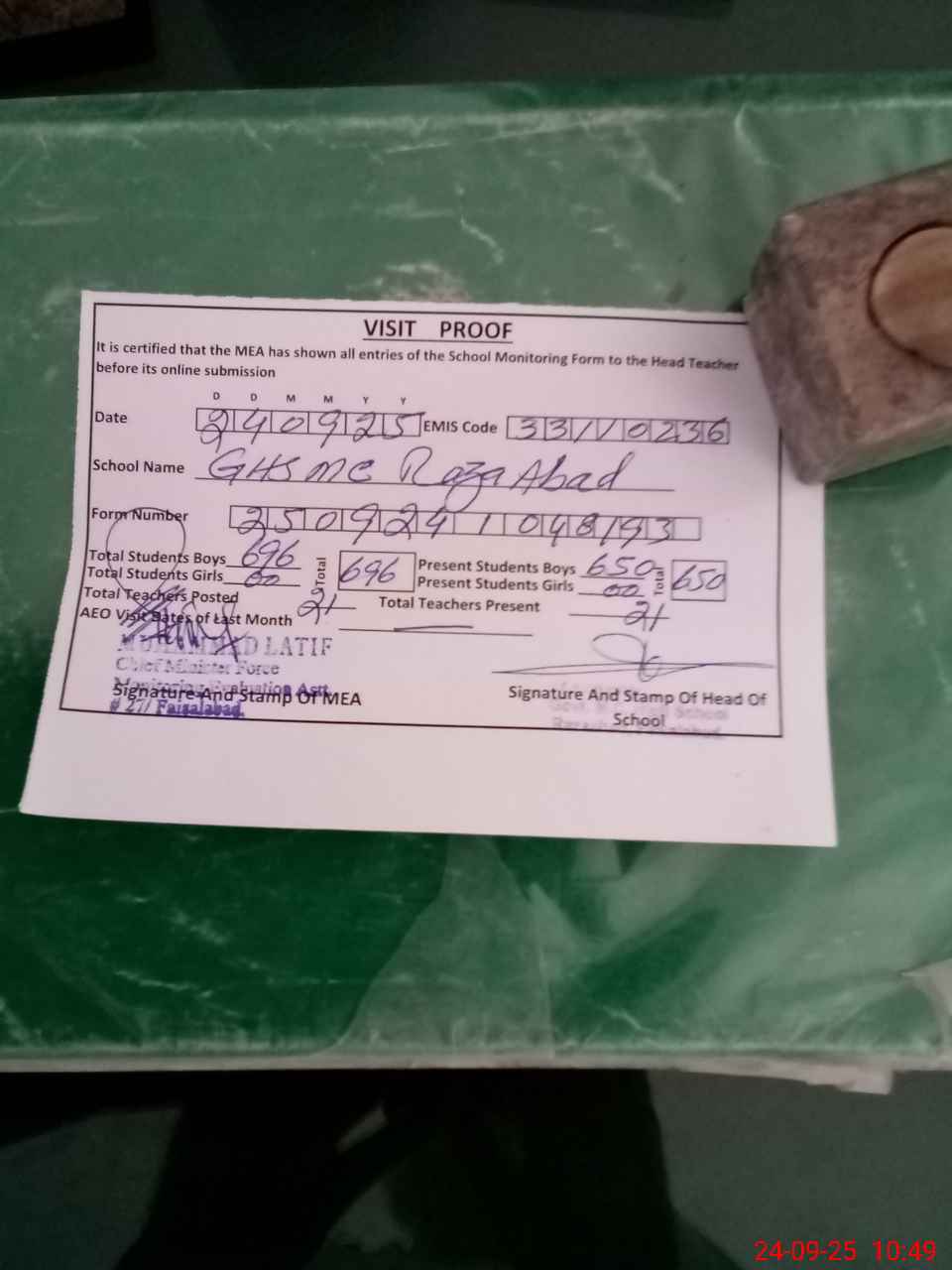 | EMIS Code: 33110236 | Name of School: GHS MC RAZA ABAD FAISALABAD | |||