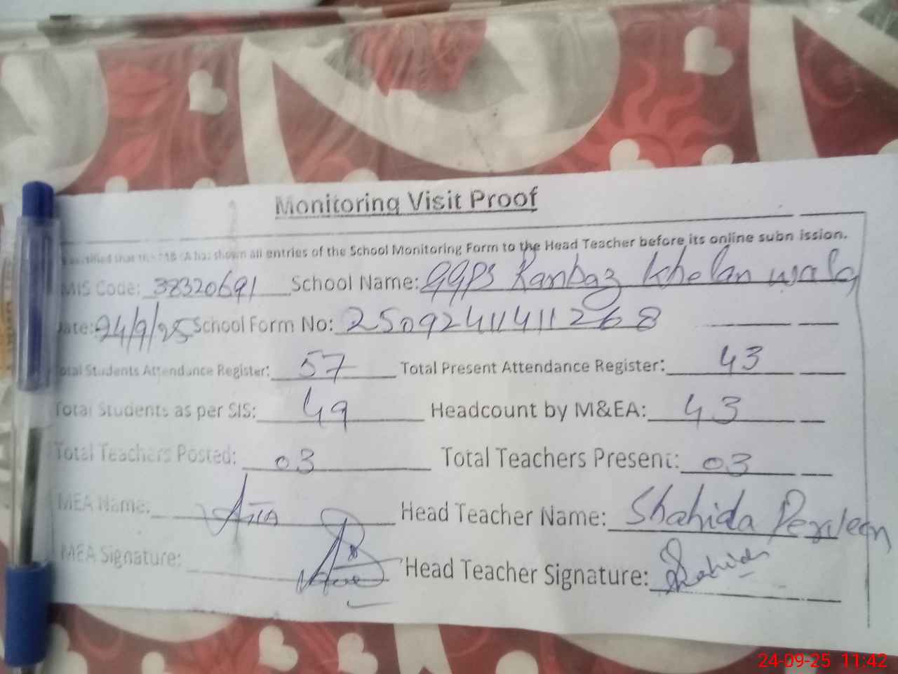 | EMIS Code: 38320691 | Name of School: GGPS RANBAZ KHELAN WALA | |||