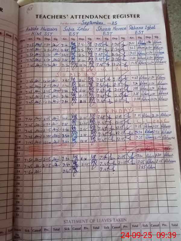 | Name: AB**** HU**** Designation: (School Headmaster's/Headmistress's) SST HEADMISSTRES Phone/Cell Number: 03**** |