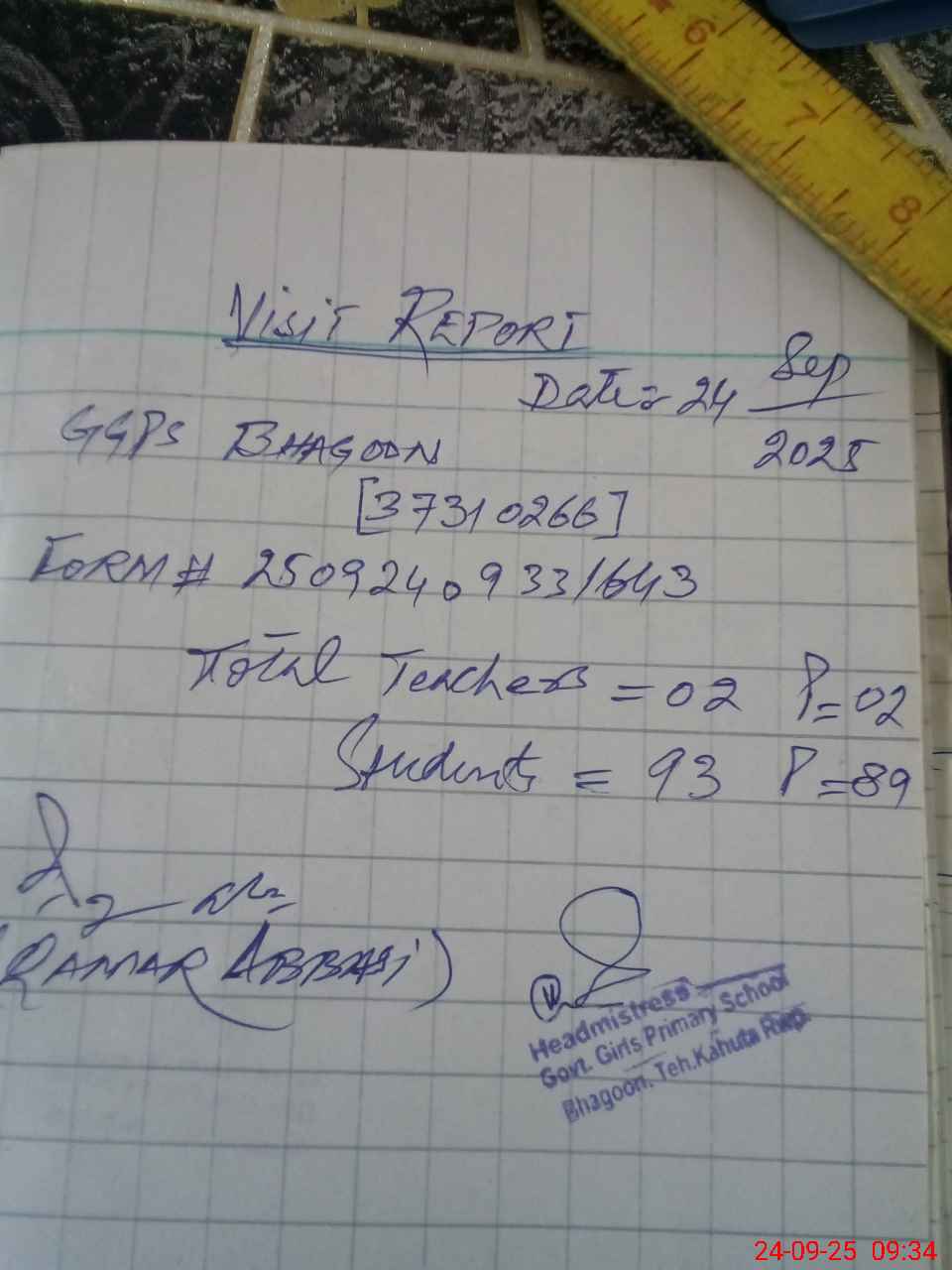 | EMIS Code: 37310266 | Name of School: GGPS BHAGOON | |||