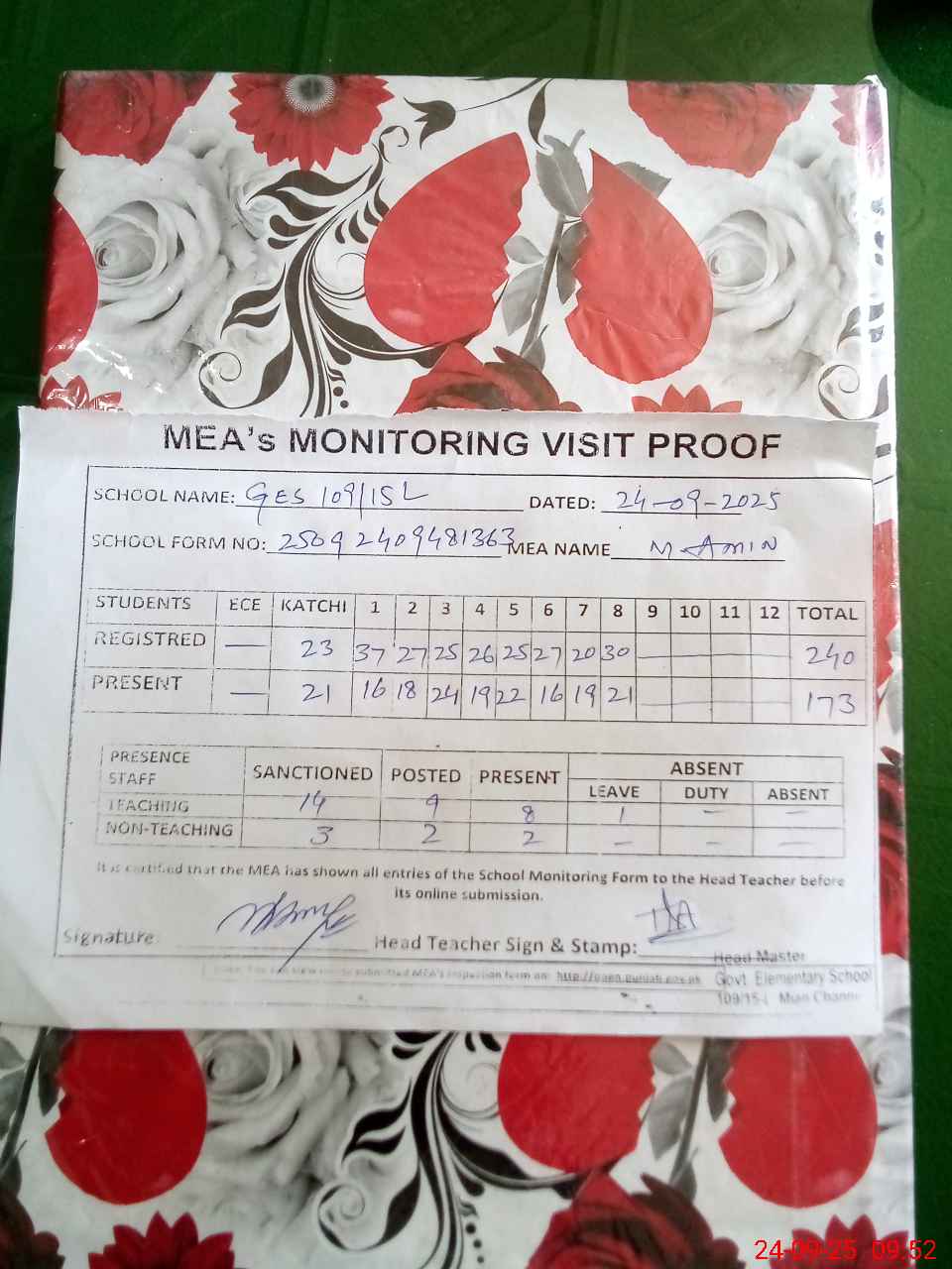 | EMIS Code: 36430054 | Name of School: GES 109/15-L, MIAN CHANNU | |||