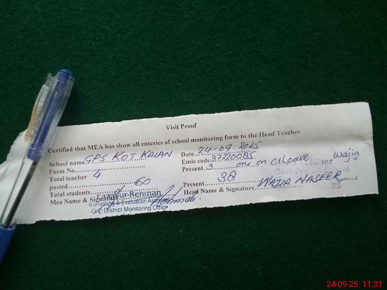 | EMIS Code: 37220085 | Name of School: GPS KOT KALAN | |||