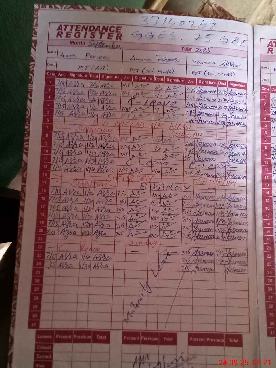 | 33**** | Am**** Fa**** | ESE | Contract | 0 | 0 | 0 | 0 | 0 | 0 | 0 | 0 | 0 | Maternity |