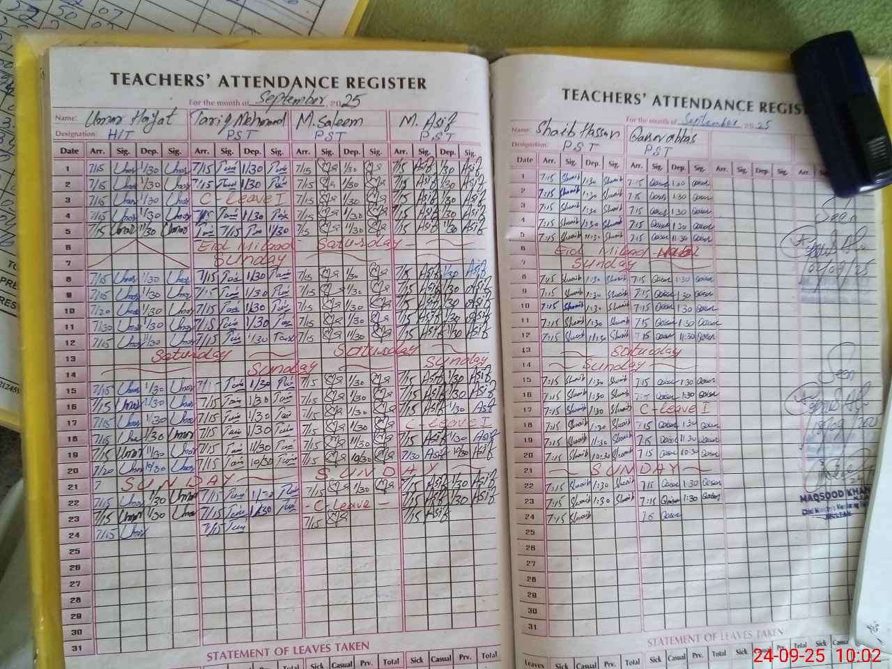 | Leave | Duty | Absent | Maternity | Medical | Ex- Pak |