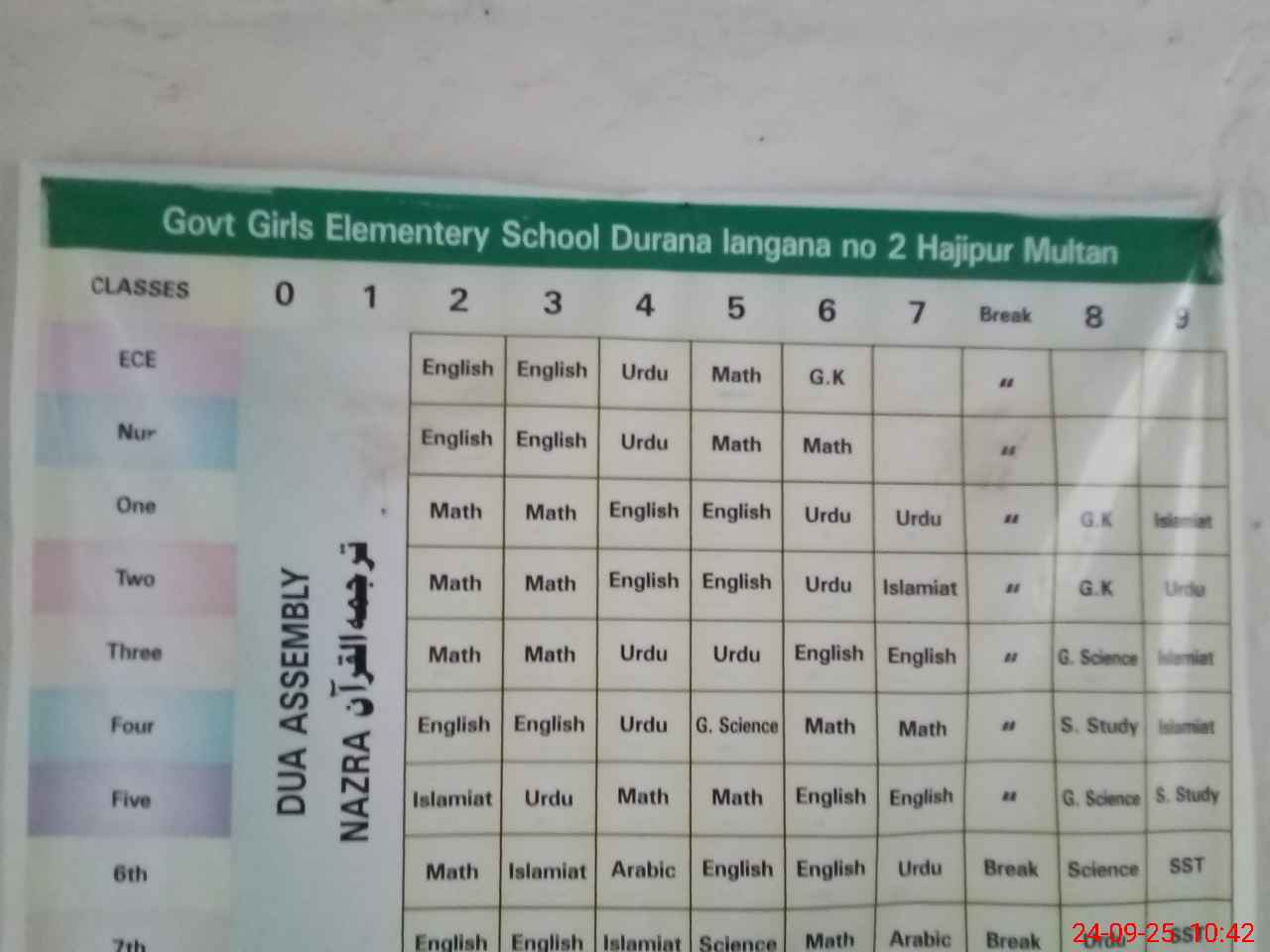 | EMIS Code: 36110193 | Name of School: GGES DURANA LANGANA NO.2 HAJI PUR MULTAN | |||