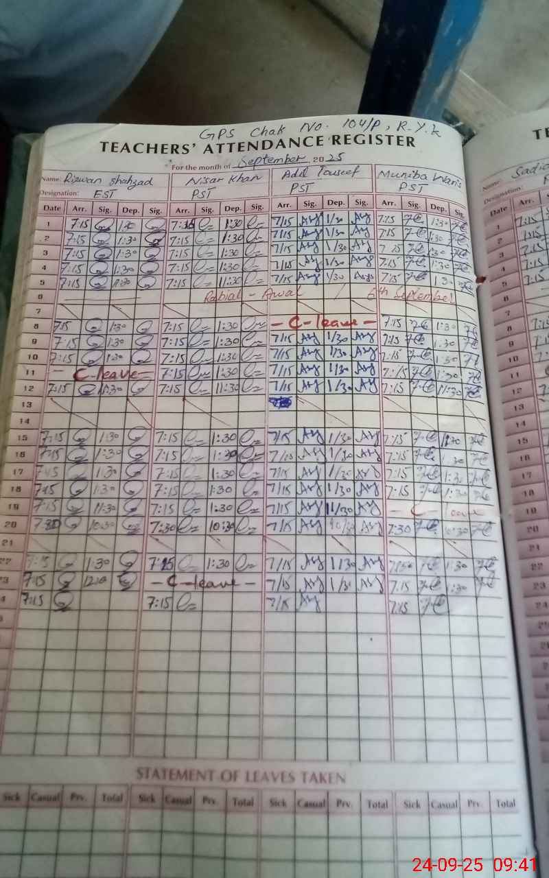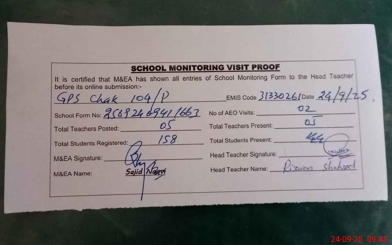 | EMIS Code: 31330261 | Name of School: GPS CHAK NO. 104/P | |||