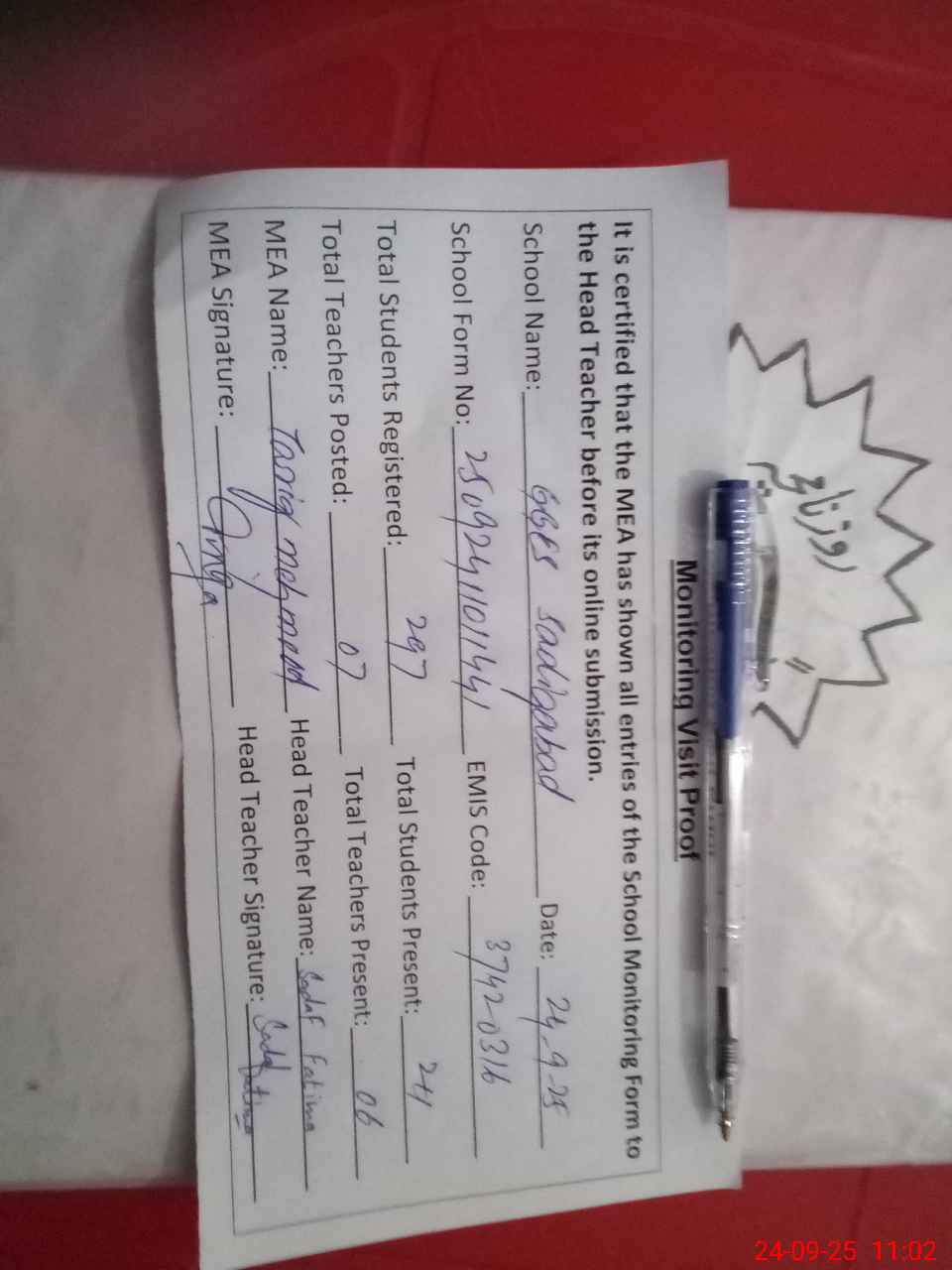 | EMIS Code: 37420316 | Name of School: GGES SADIQABAD | |||