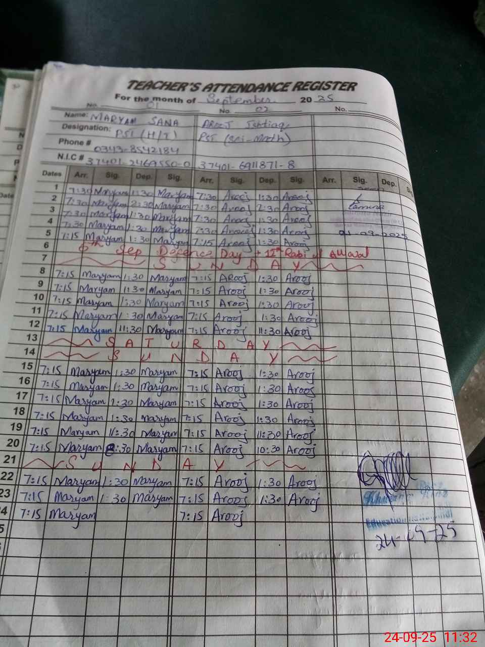 | Name: MA**** SA**** Designation: (School Headmaster's/Headmistress's) PST/PTC/JV Phone/Cell Number: 03**** |