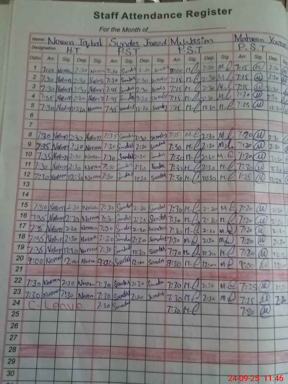 | CNIC | Full Name | Designation | R/C | Absence During Last Calender Month |