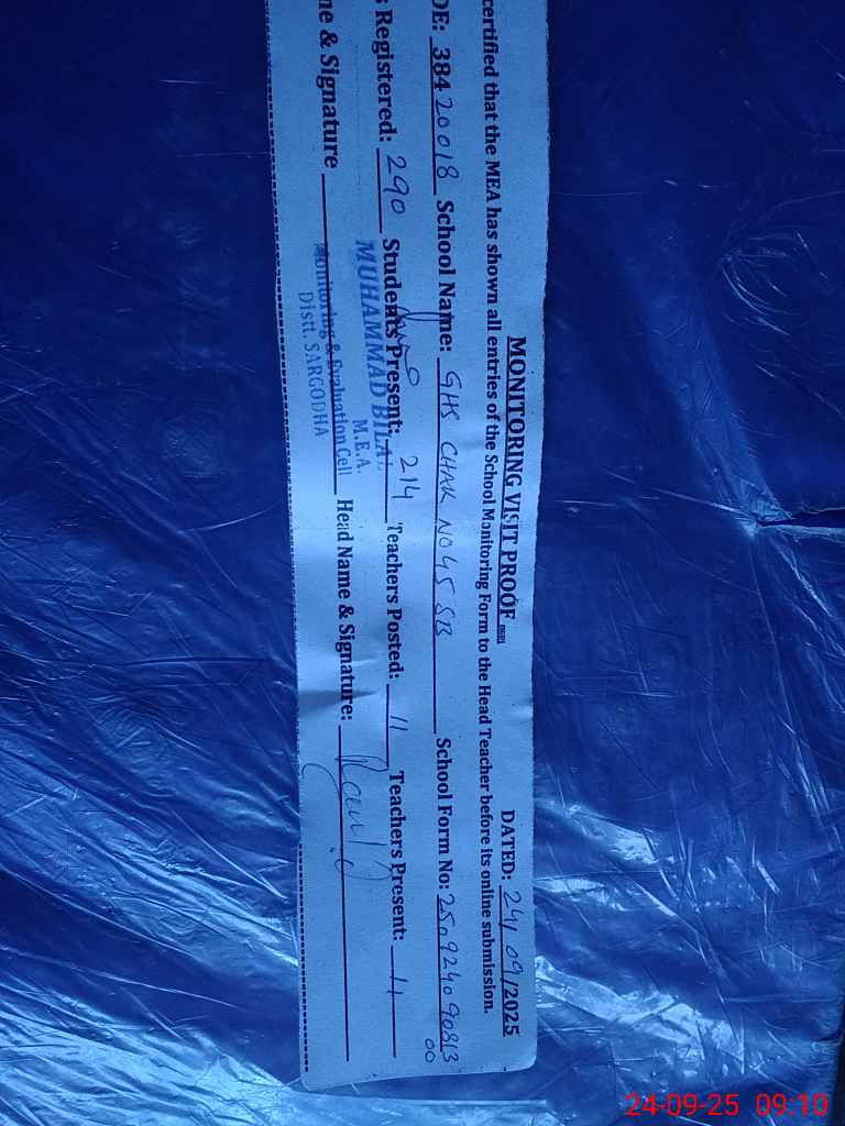 | EMIS Code: 38420018 | Name of School: GHS CHAK NO.45 SB SGD | |||