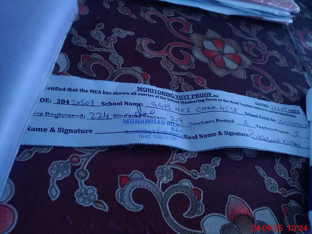 | EMIS Code: 38420501 | Name of School: GGPS NO.1 CHAK NO.45 SB | |||
