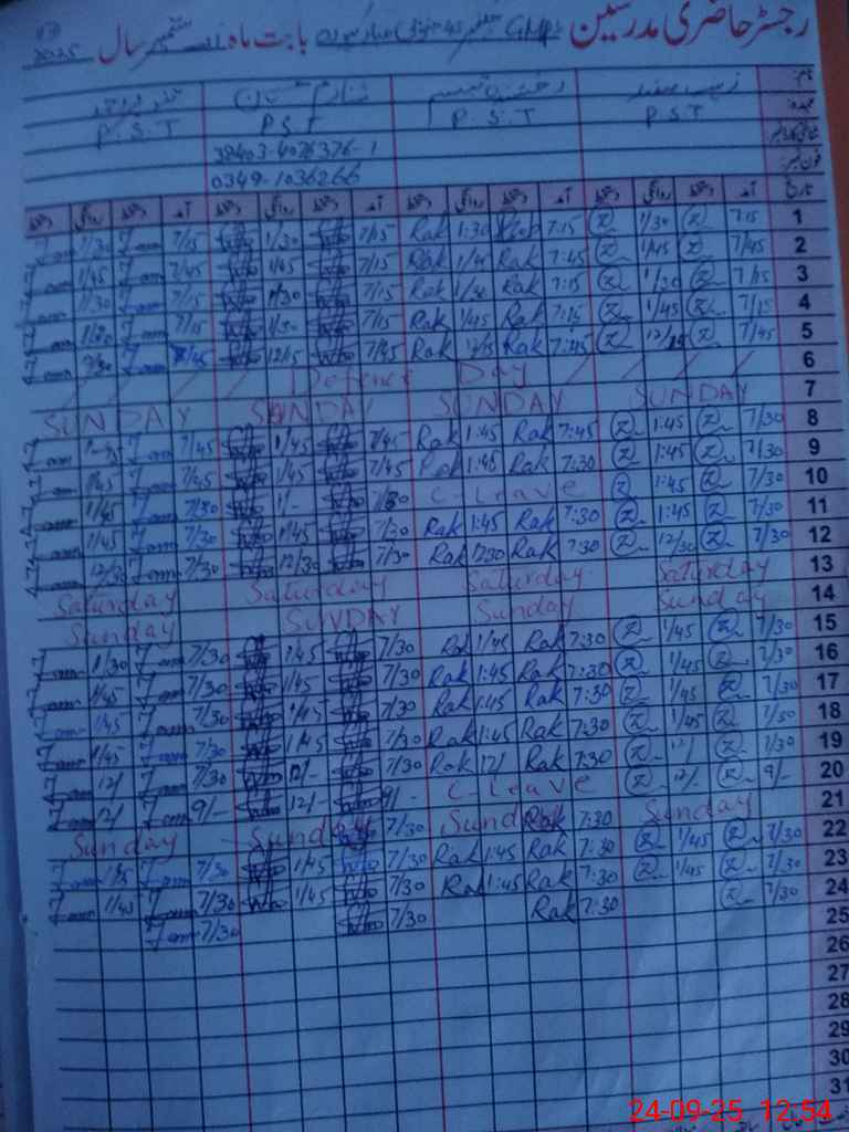 | Name: ZA**** SA**** Designation: (School Headmaster's/Headmistress's) PST Phone/Cell Number: 03**** |